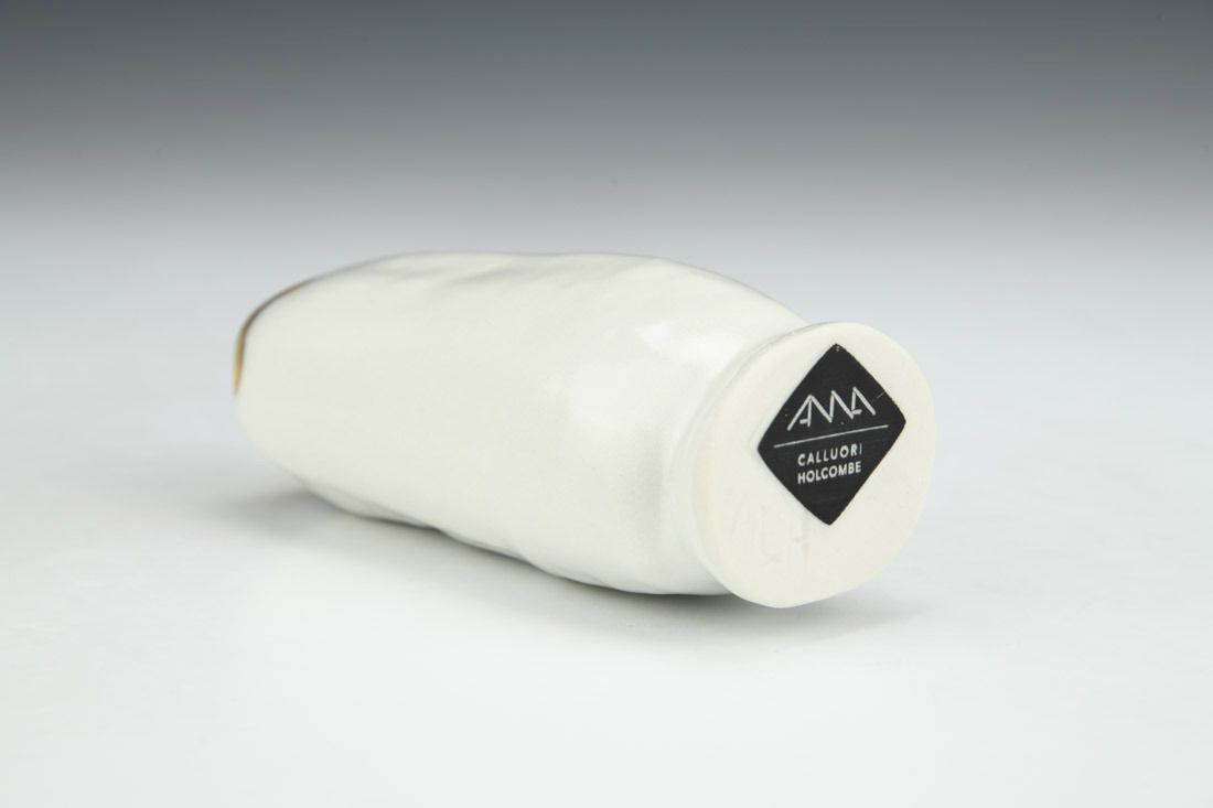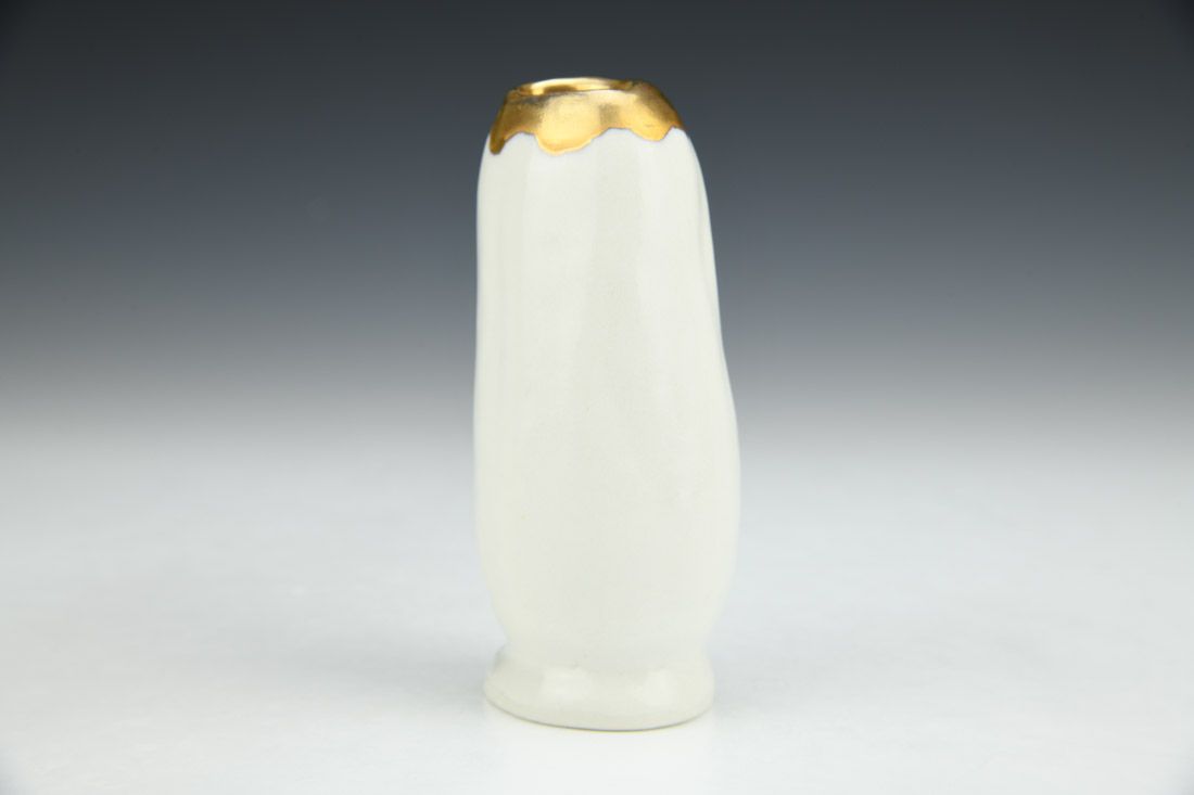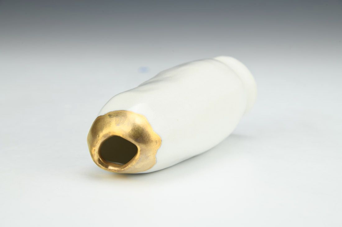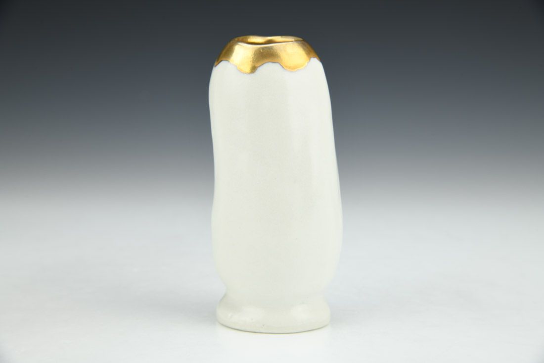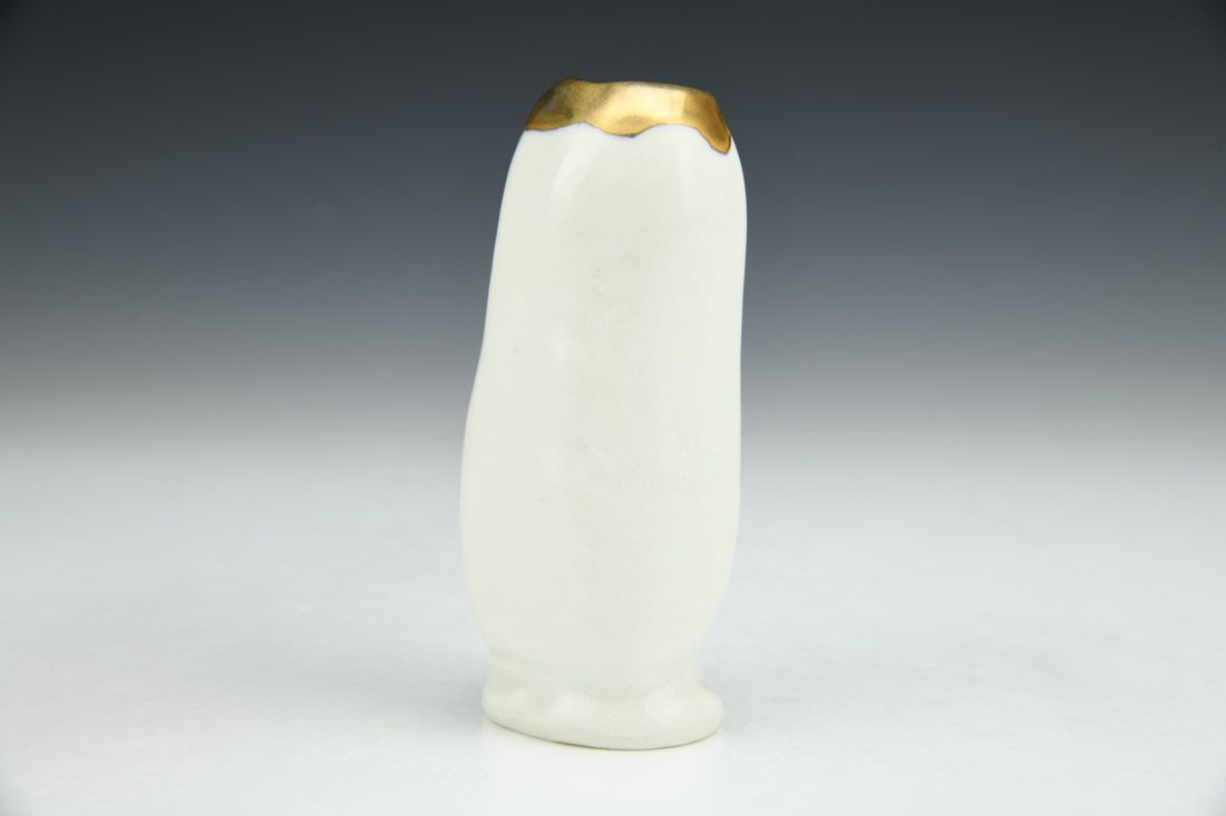 Porcelain, slipcast from printed model of 3D scan, gold luster, 4.25 x 2 x 1.75 inches.