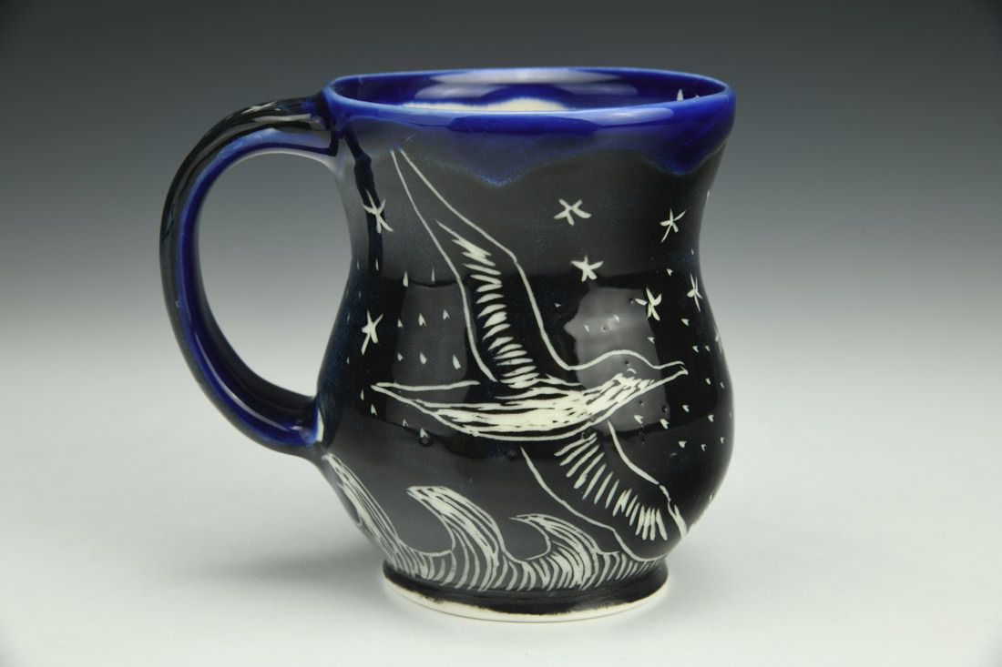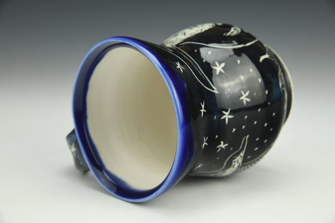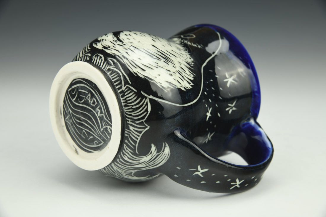 Porcelain, wheel thrown, cone 6 electric fired, 4.25 x 3.25 x 4.5 inches.