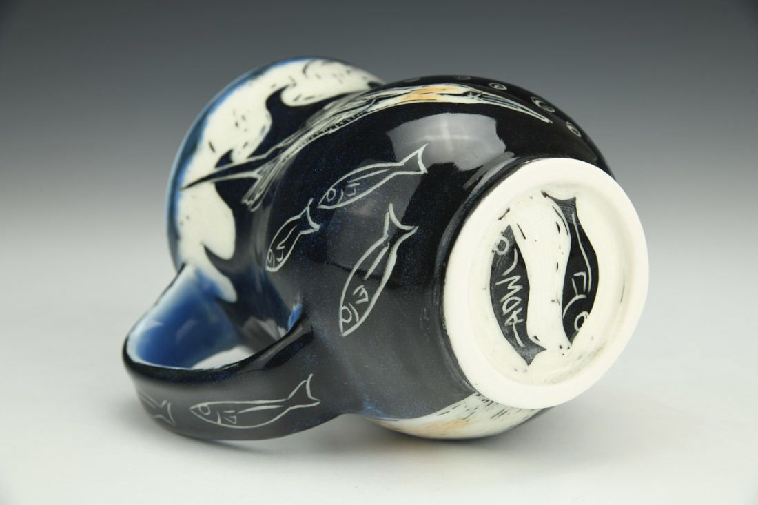 Porcelain, wheel thrown, cone 6 electric fired, 4.5 x 3.5 x 5 inches.
