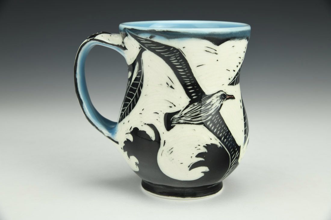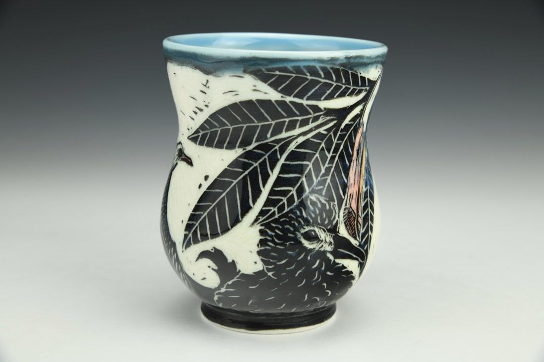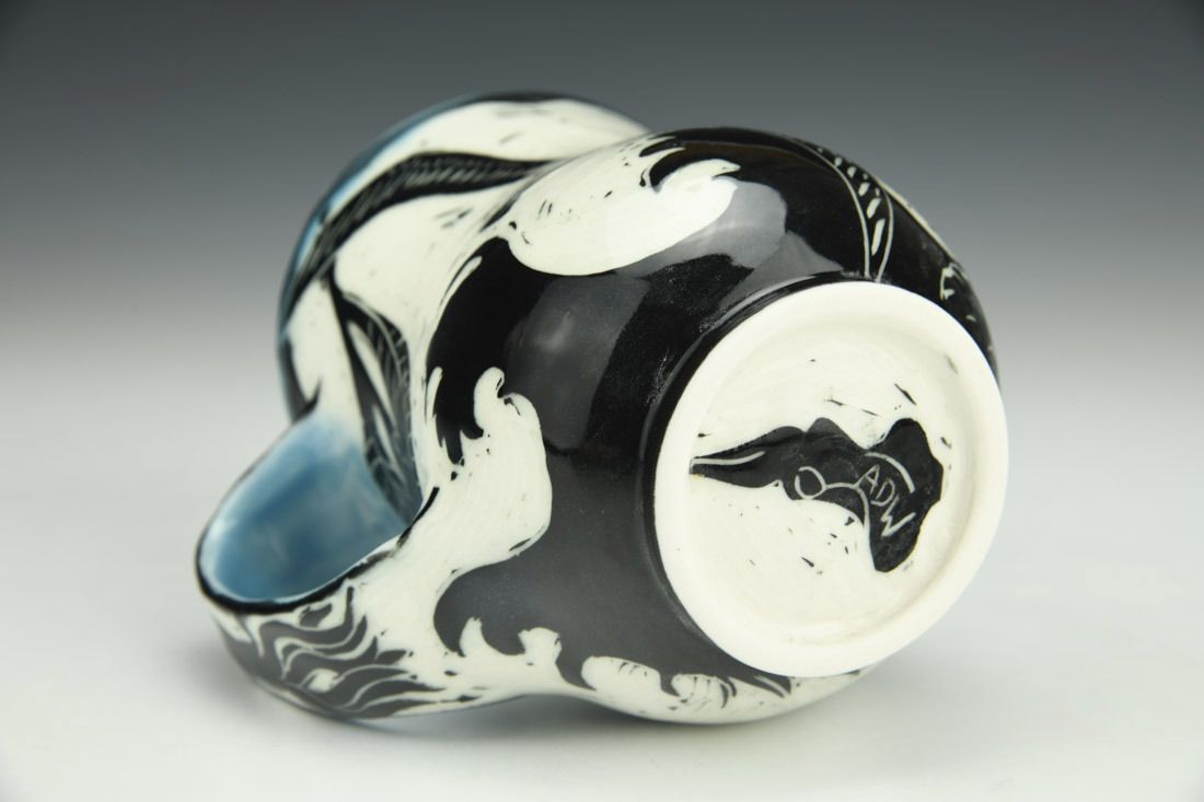 Porcelain, wheel thrown, cone 6 electric fired, 4.5 x 3.5 x 5 inches.