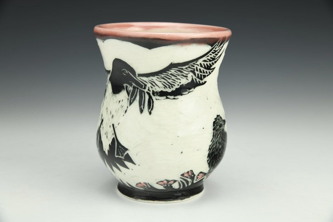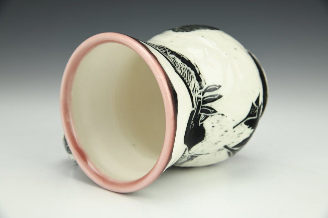 Porcelain, wheel thrown, cone 6 electric fired, 4.5 x 3.5 x 5 inches.