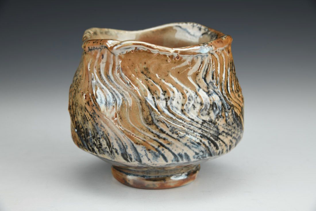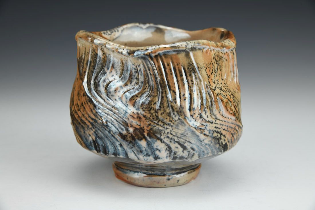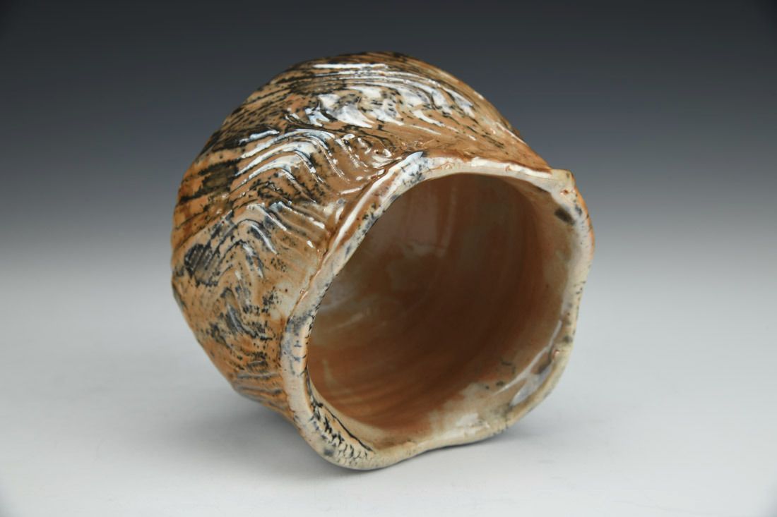 White stoneware, wheel thrown, soda fired, 4 x 4.25 x 4.25 inches.