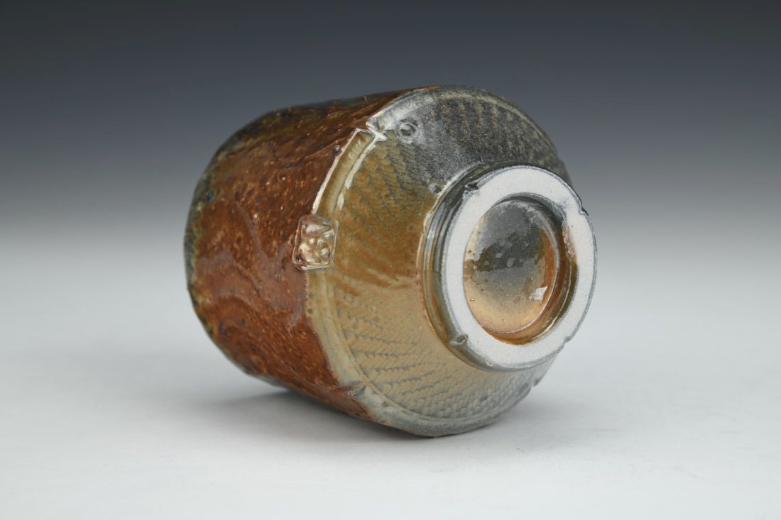 Stoneware, wheel thrown, soda fired, 3 x 2.75 x 2.75 inches.