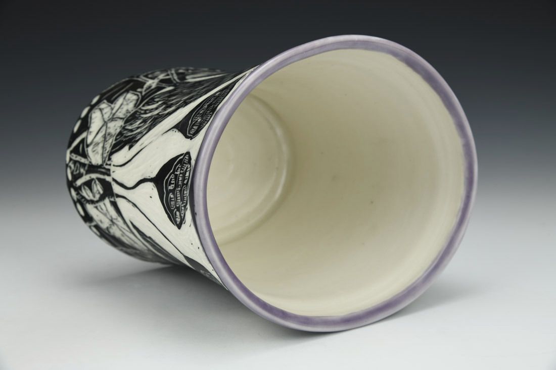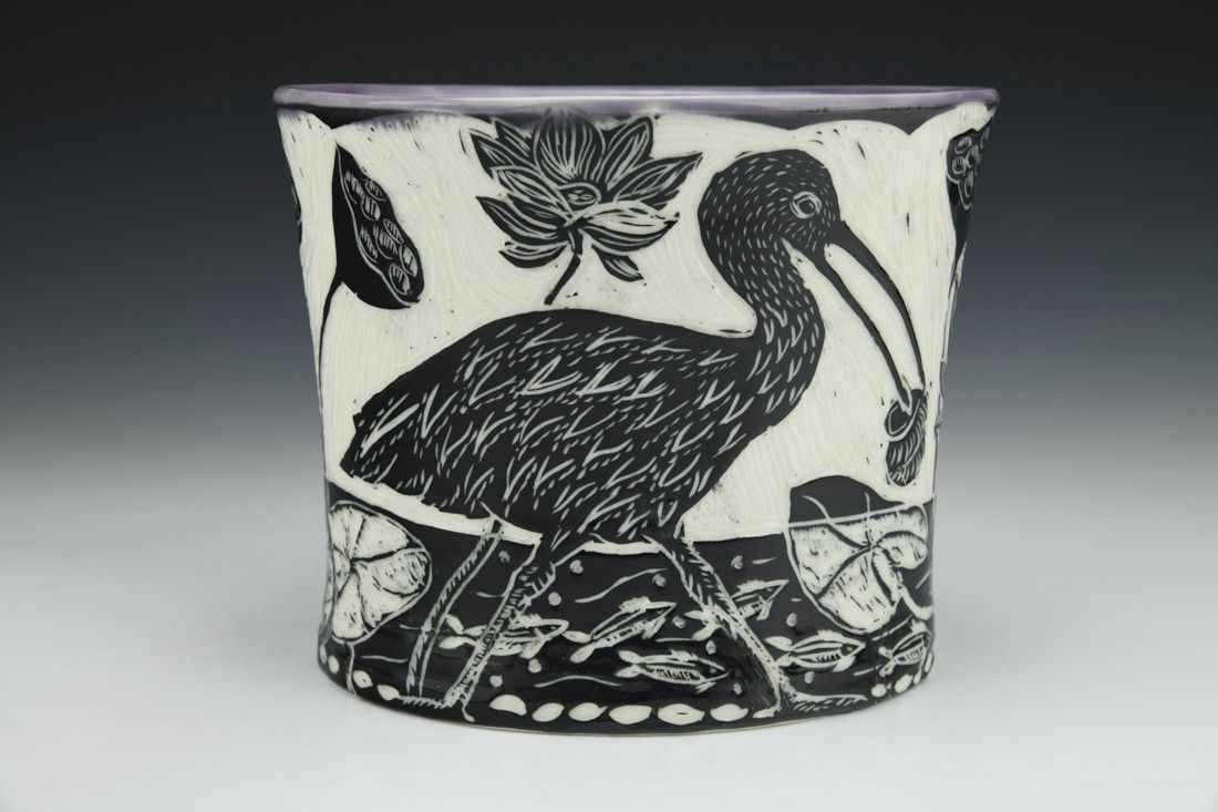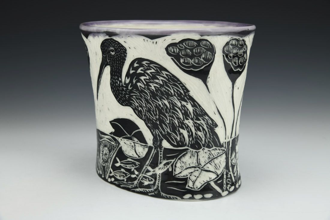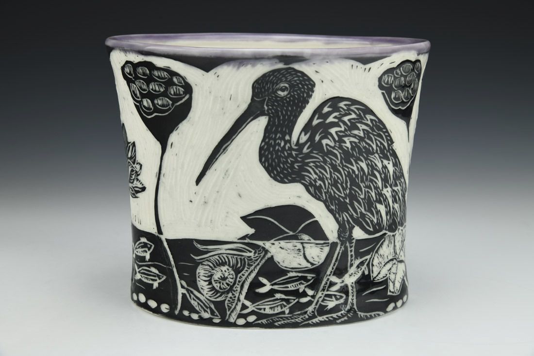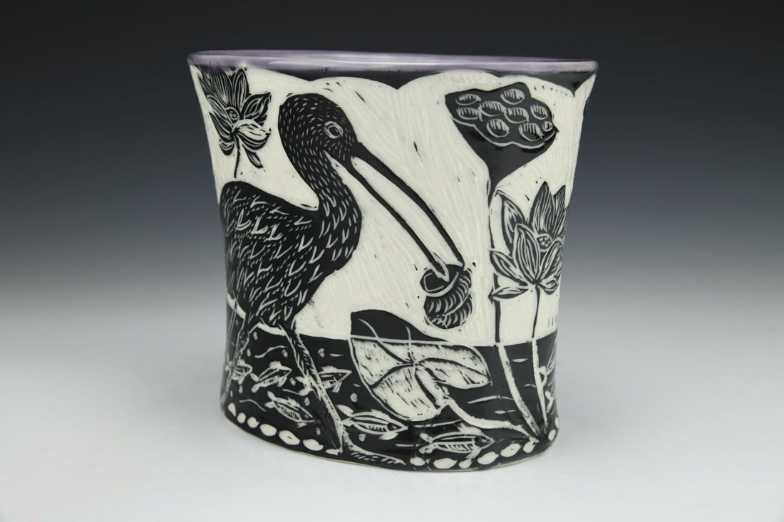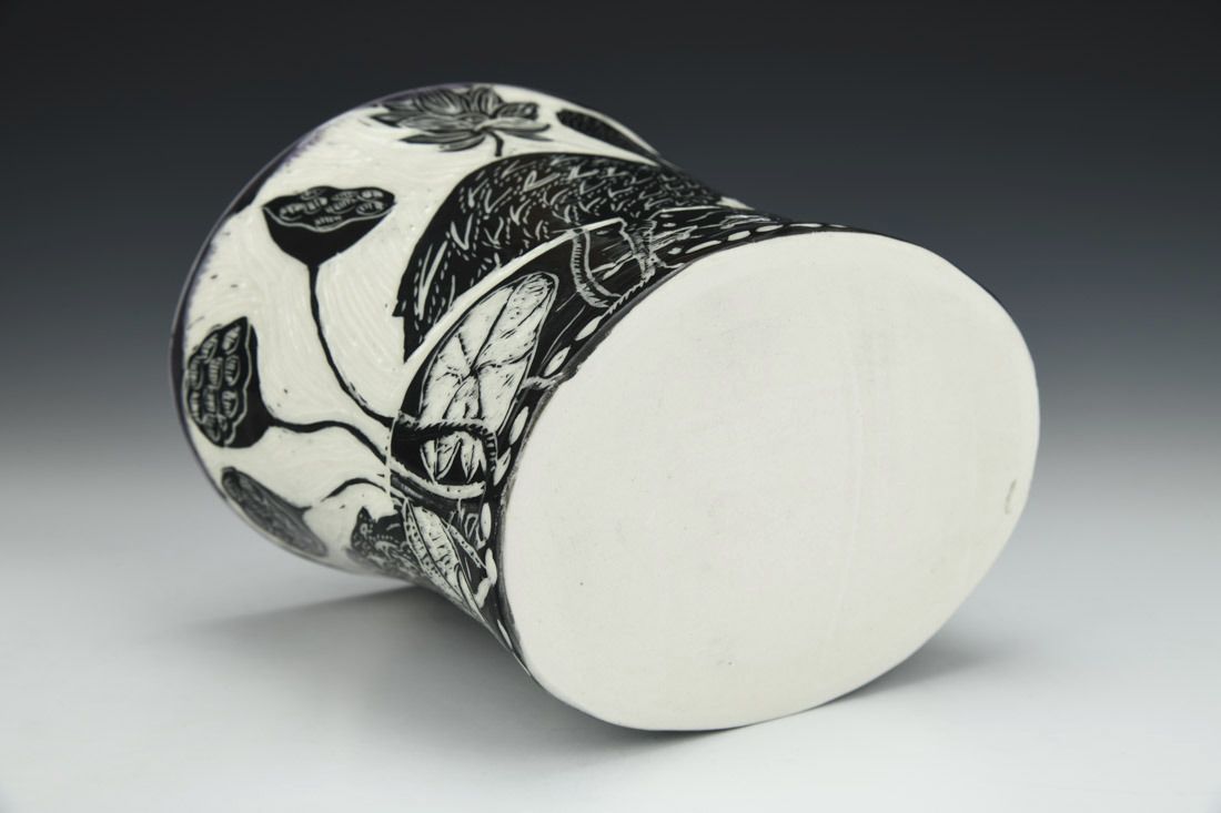 Porcelain, wheel thrown and altered, cone 6 electric fired, 6.25 x 7.25 x 6 inches.