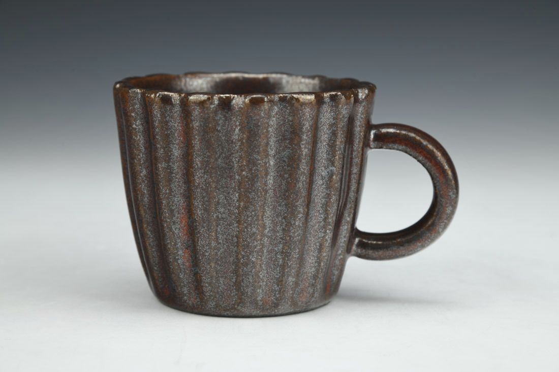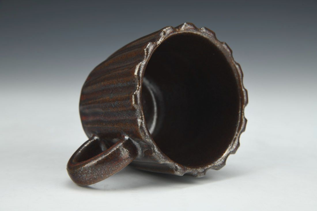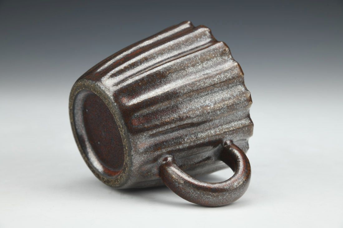 Stoneware, wheel thrown, hand faceted, gas reduction fired, 2.75 x 4.25 x 3 inches.