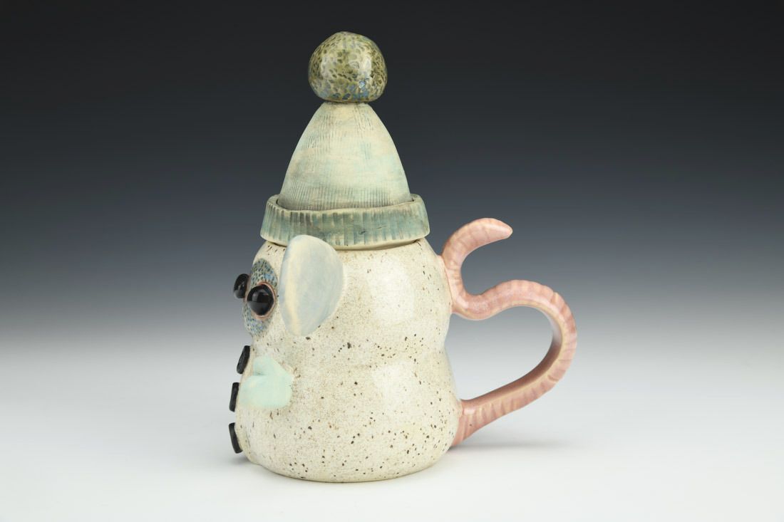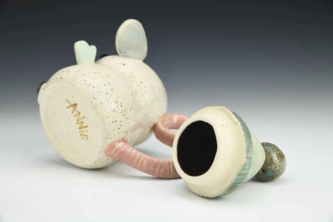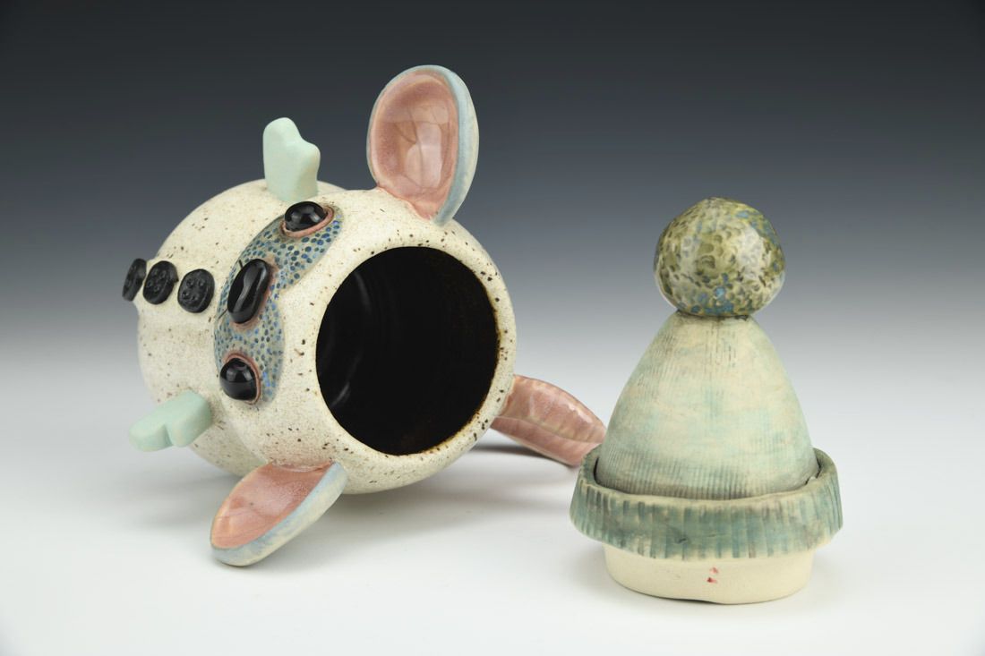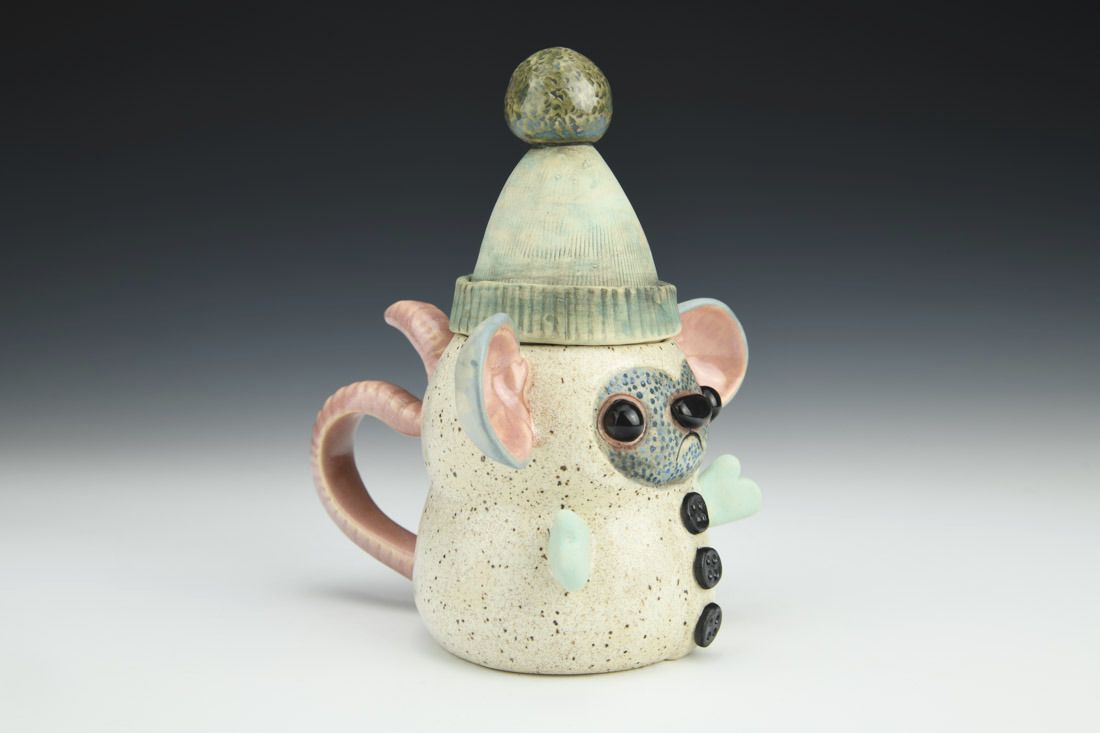 Stoneware, wheel thrown and hand built, underglaze, glaze, electric fired, 7 x 5.75 x 5.5 inches.