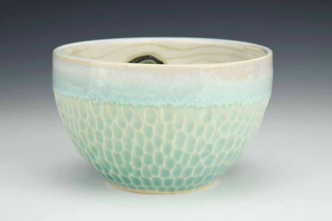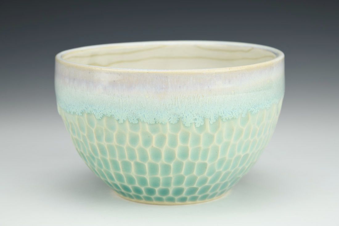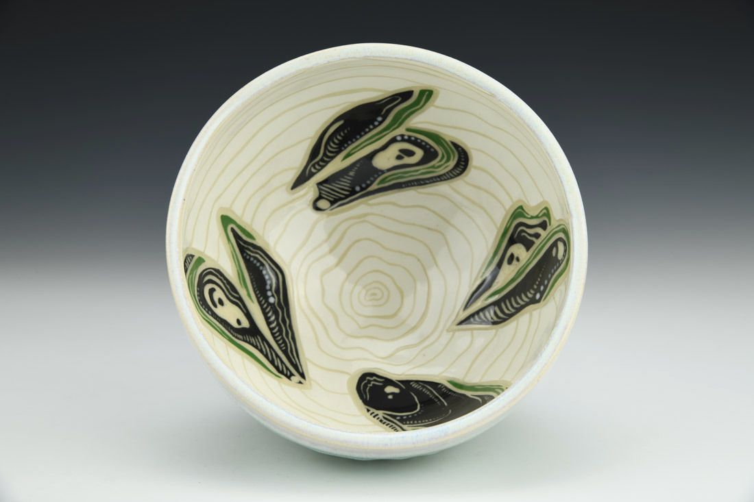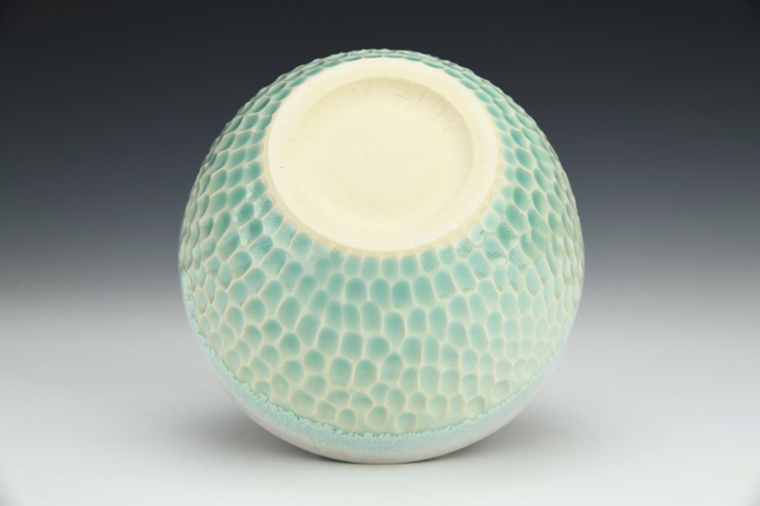B-Mix, wheel thrown, sgraffito, underglazes, glaze, cone 5 electric fired, 3.5 x 5.25 x 5.25 inches.