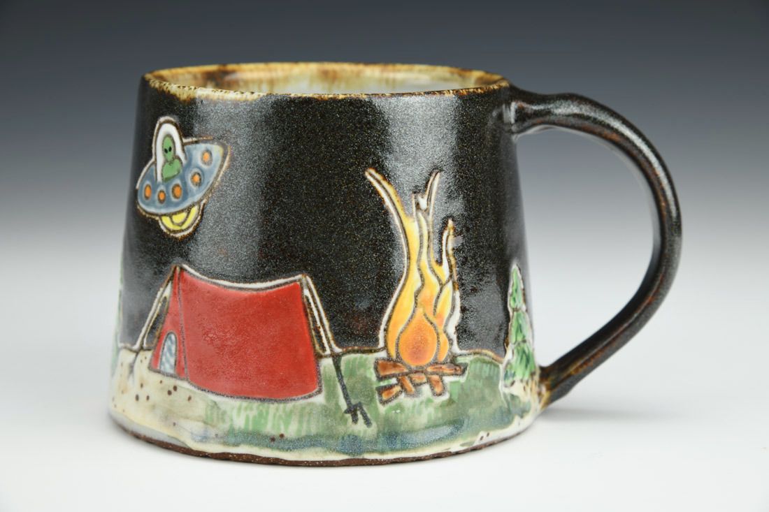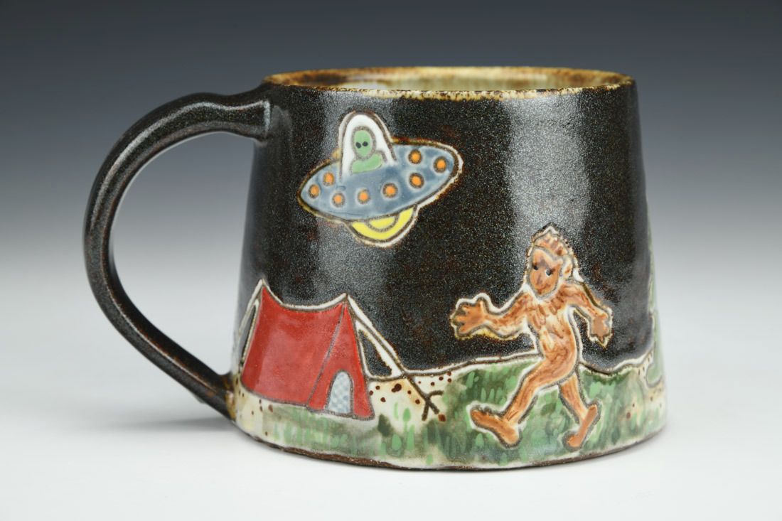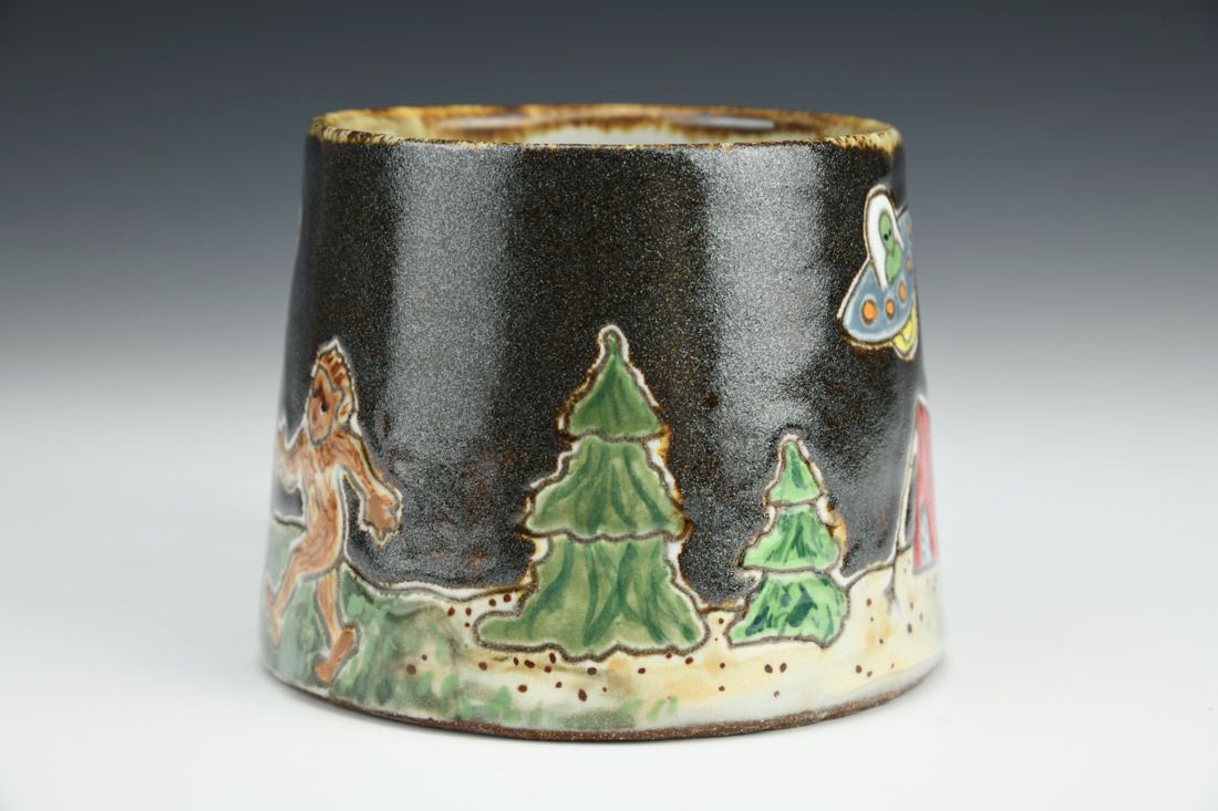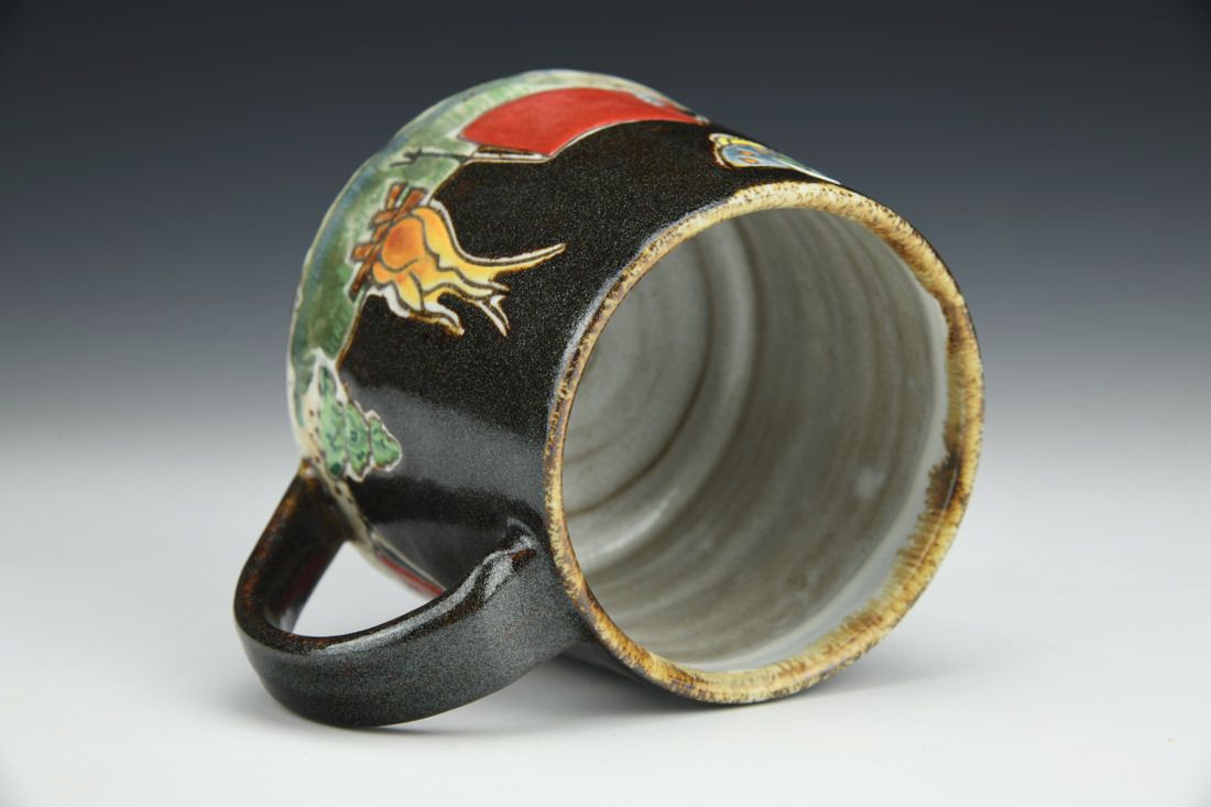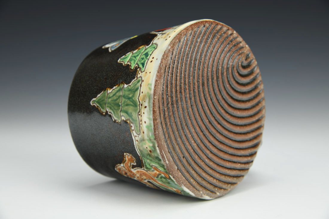 Red stoneware, wheel thrown, porcelain slip, underglaze, cone 6 oxidation fired, 3.5 x 5 x 4 inches.
