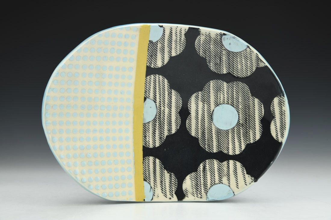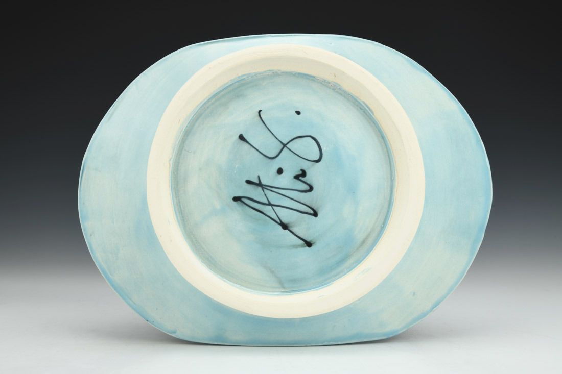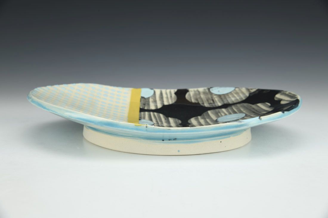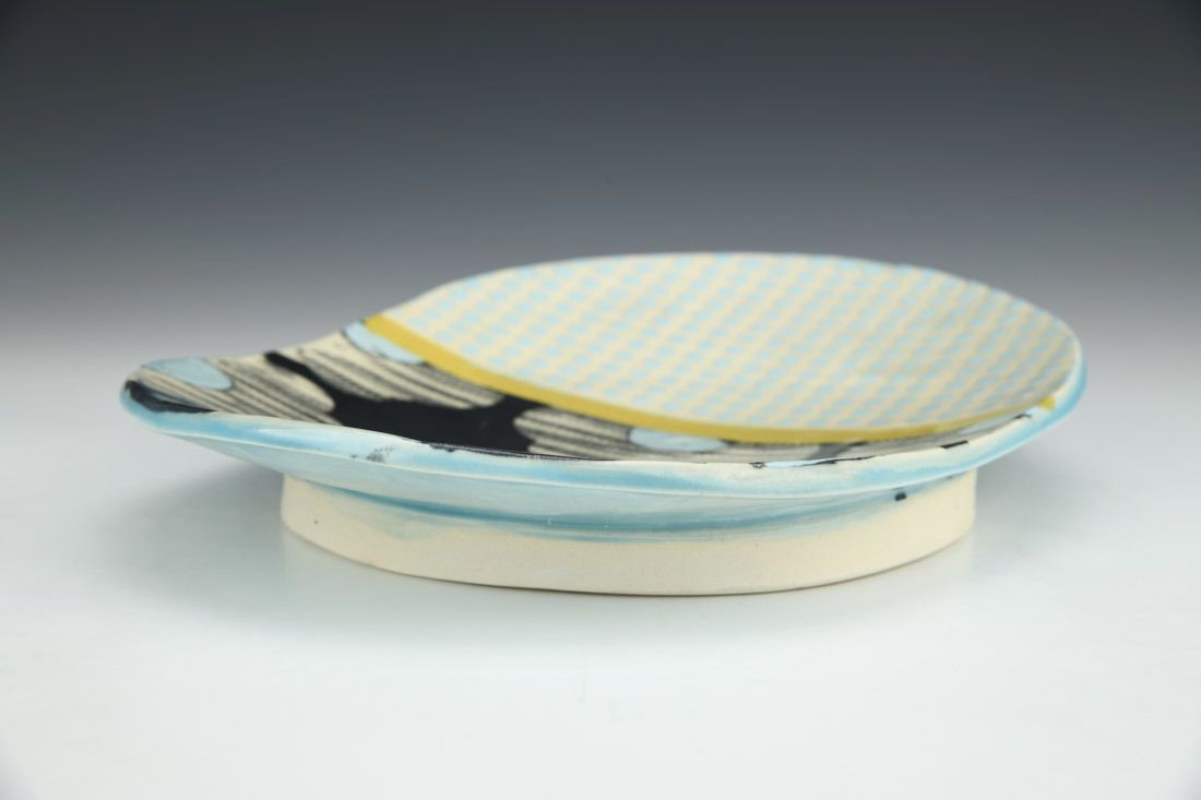 Porcelain, wheel thrown, cone 6 electric fired, 1.75 x 10.25 x 7.75 inches.