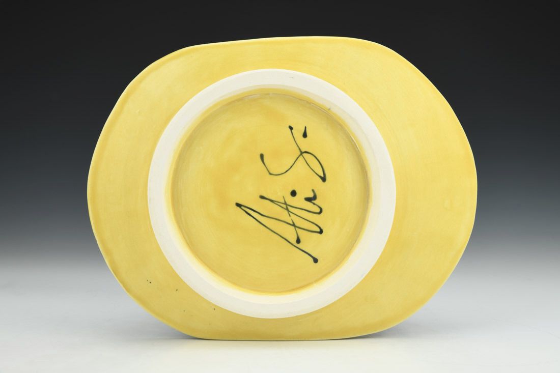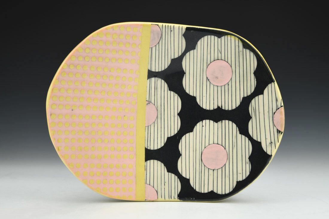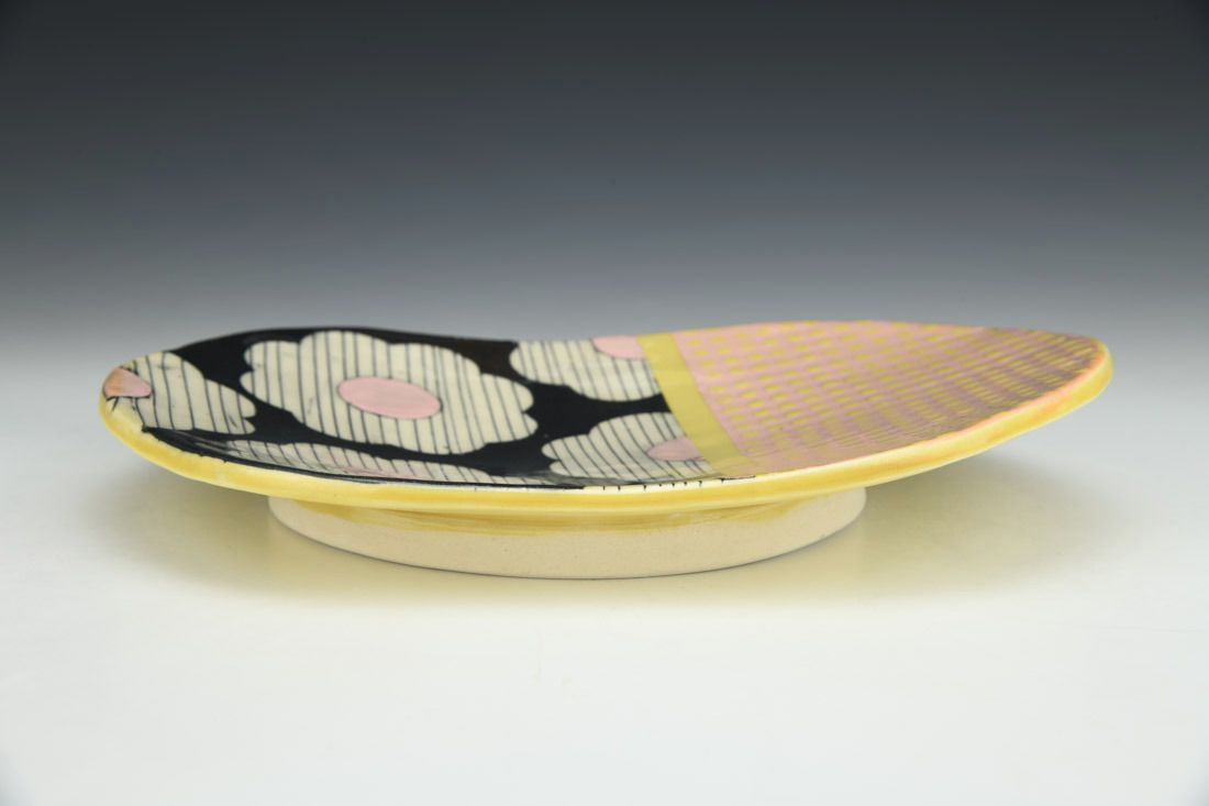 Porcelain, wheel thrown, cone 6 electric fired, 1.75 x 10.25 x 7.75 inches.