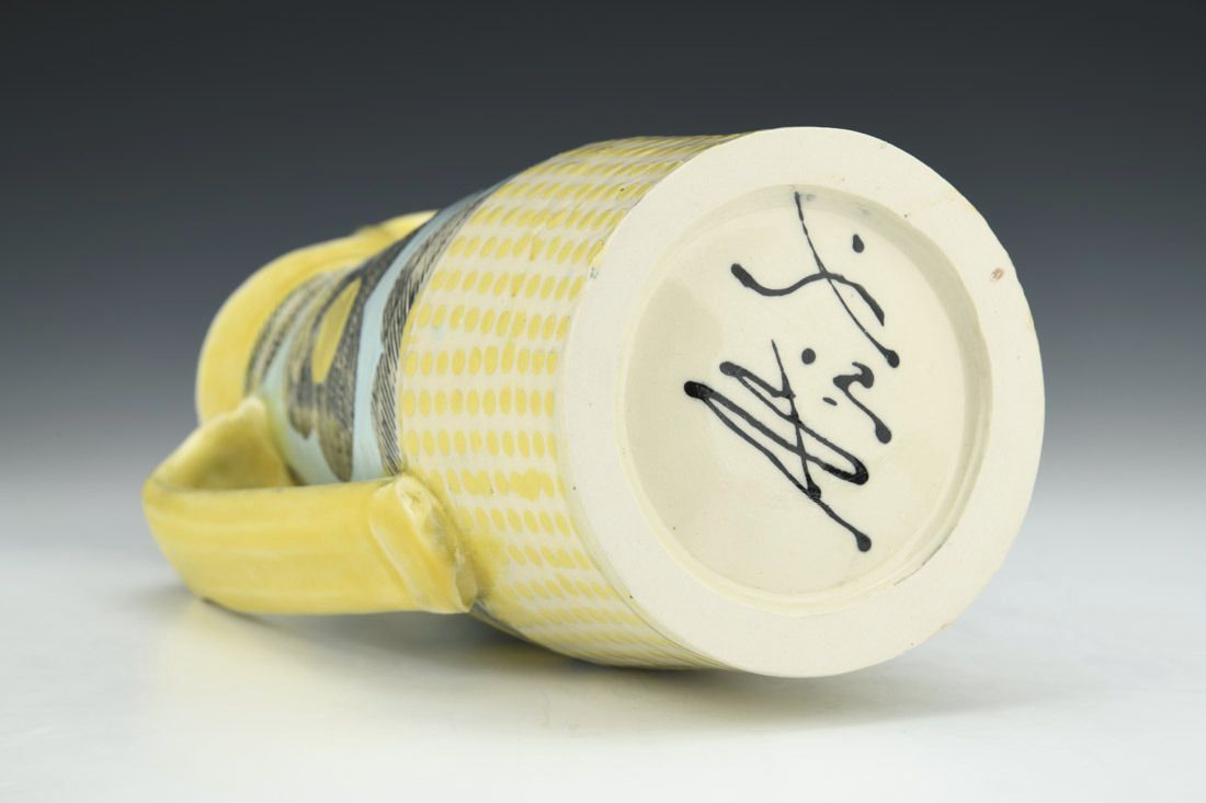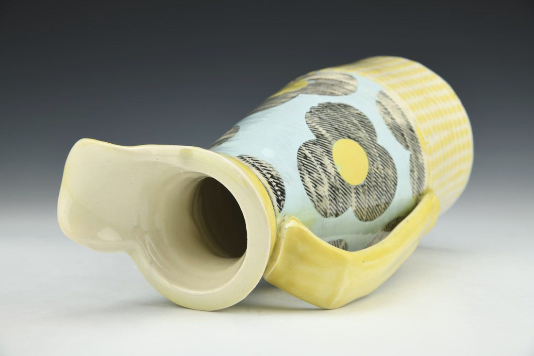 Porcelain, wheel thrown, cone 6 electric fired, 10.5 x 6 x 4.5 inches.