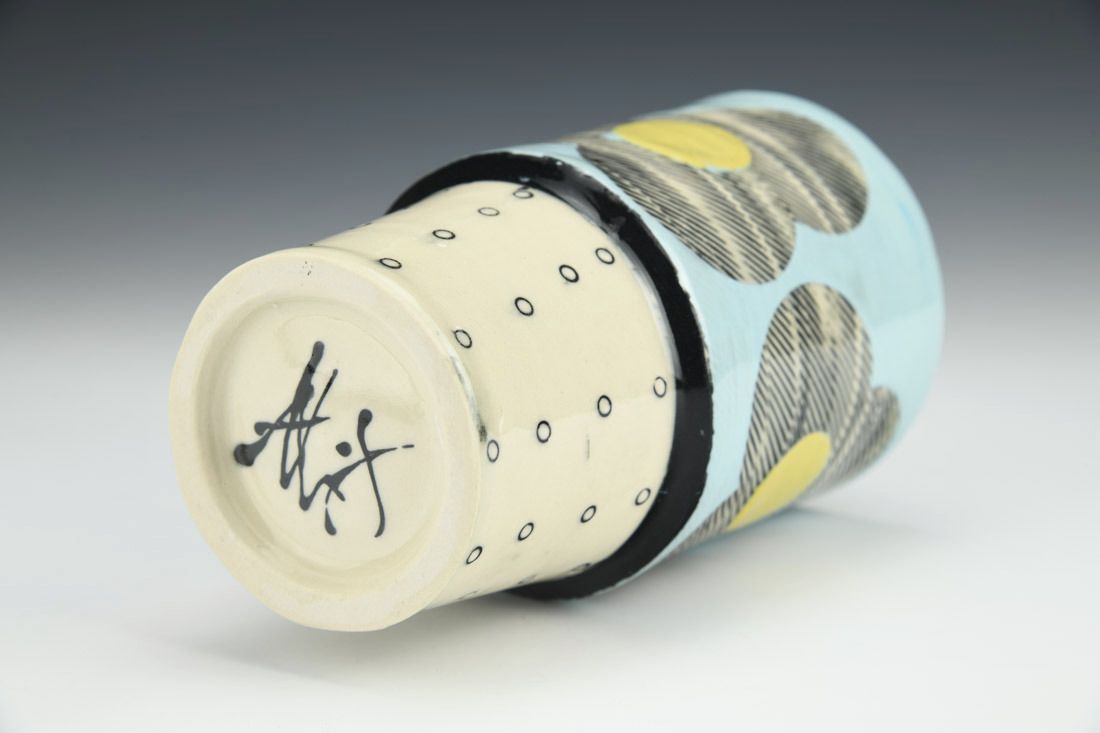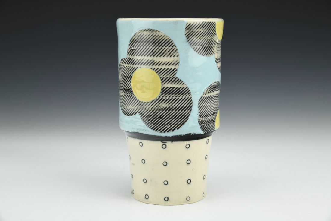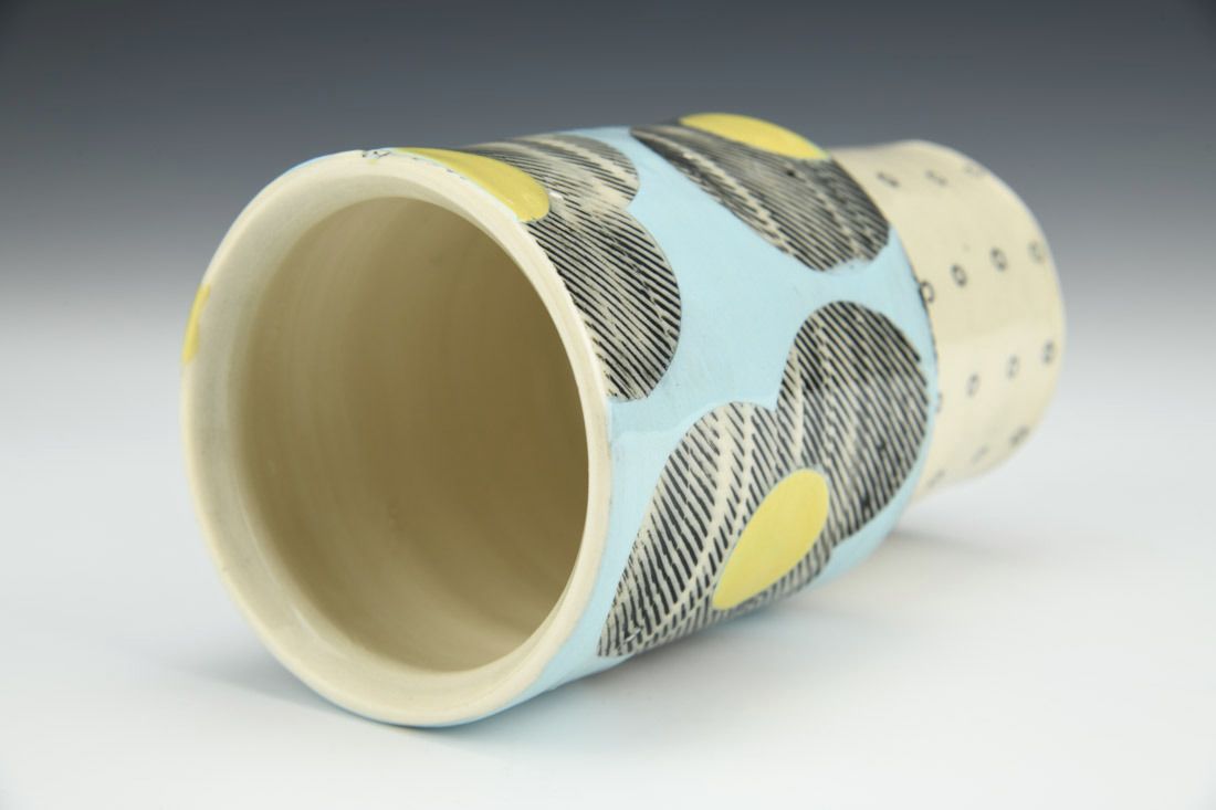 Porcelain, wheel thrown, cone 6 electric fired, 6 x 3.25 x 3.5 inches.