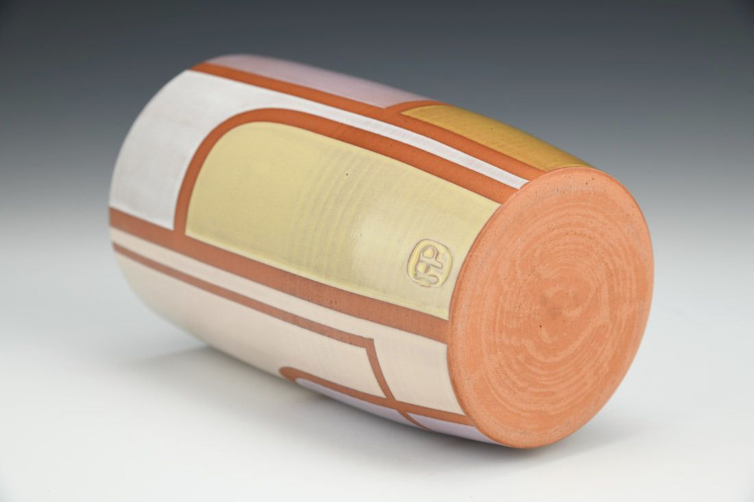 Earthenware, wheel thrown, electric fired, 5.5 x 3.5 x 3.5 inches.