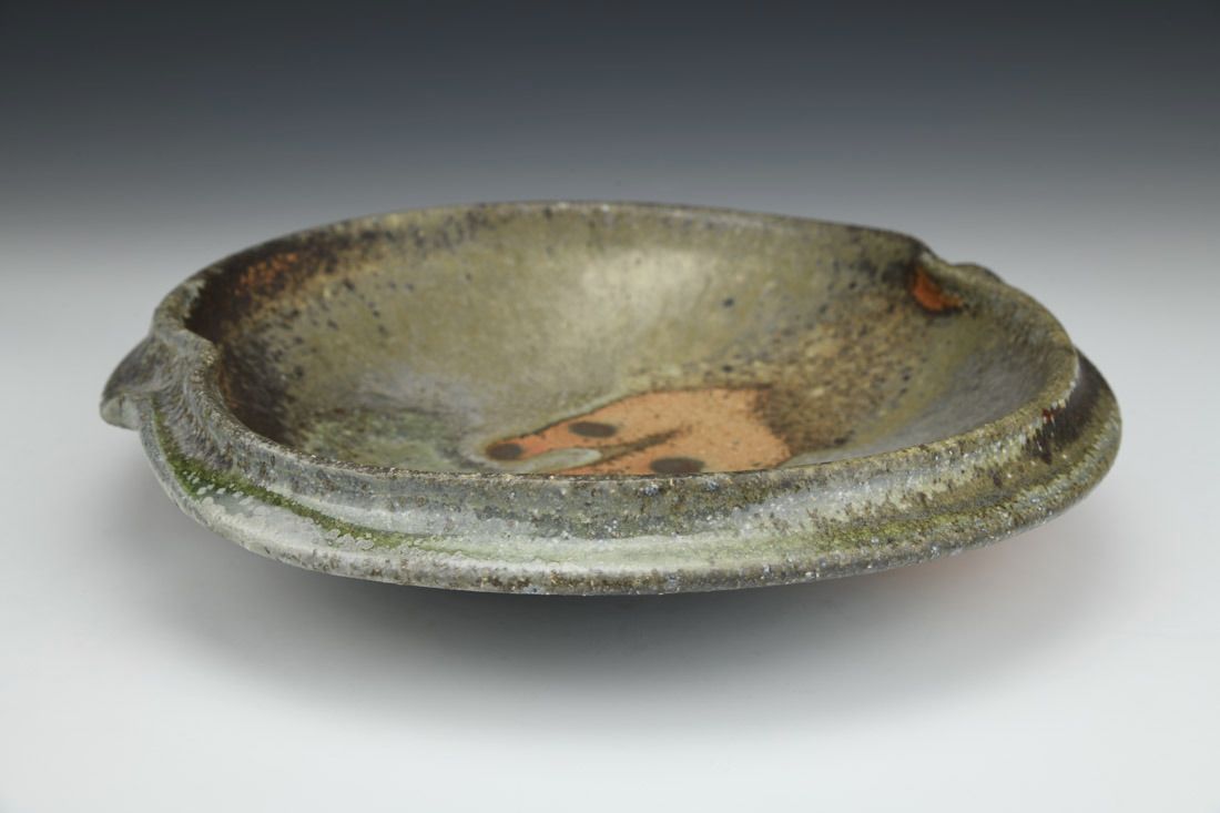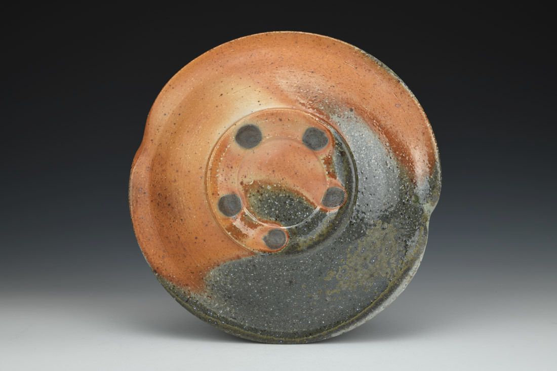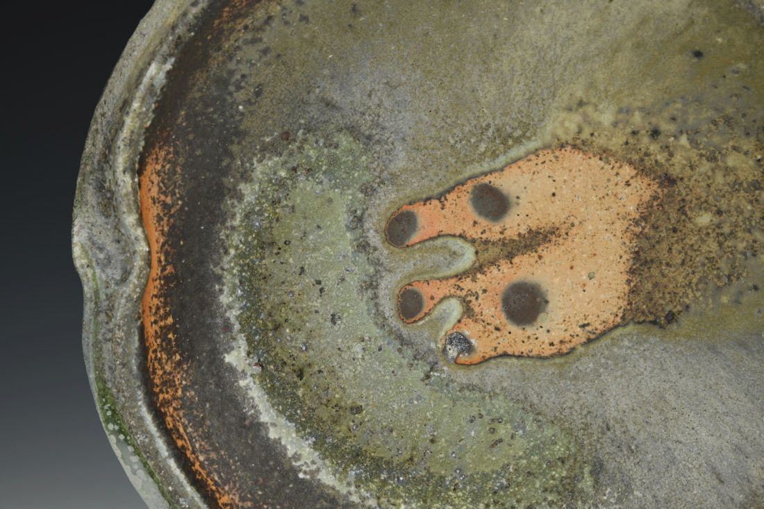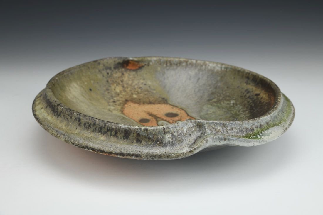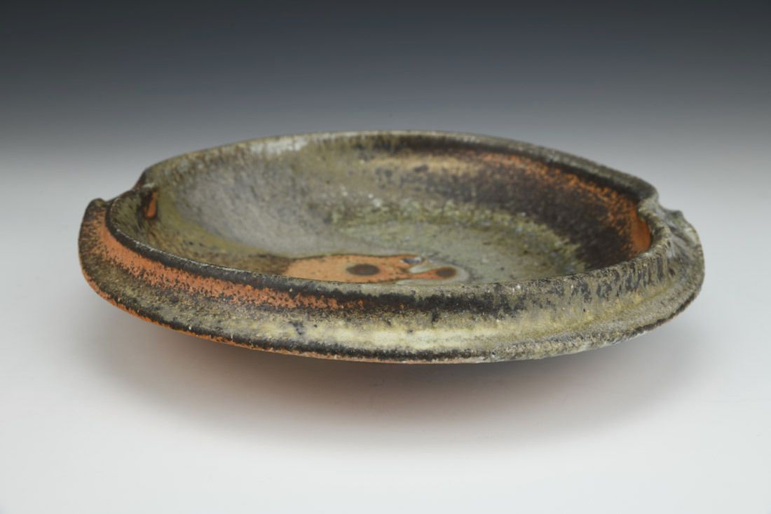 Stoneware, stained with iron-bearing wadding, woodfired in a train kiln, 2.25 x 10.25 x 10 inches.