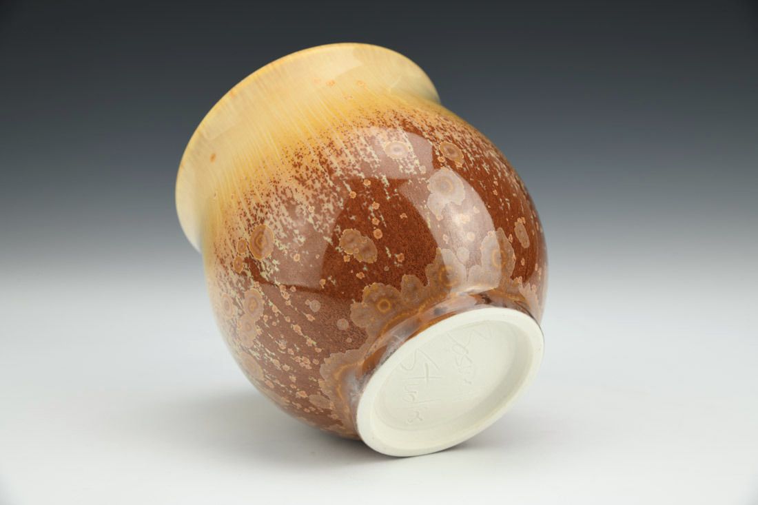 Porcelain, wheel thrown, cone 10 crystalline fired, acid etched, 4 x 5 x 4.25 inches.