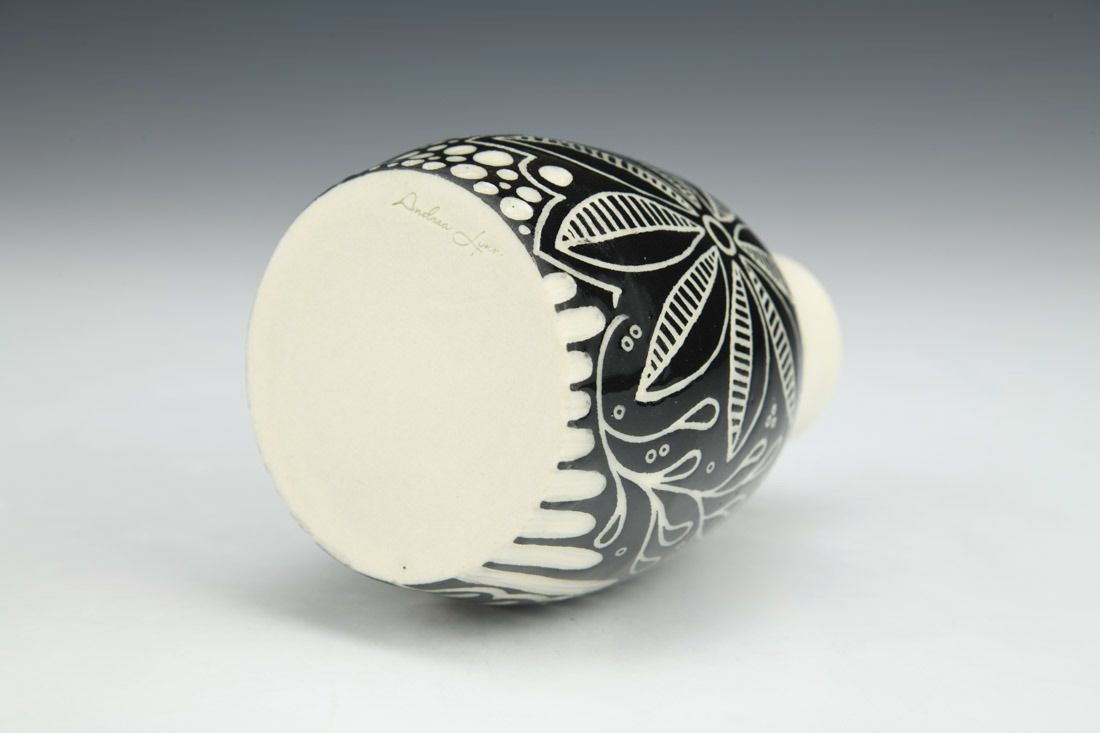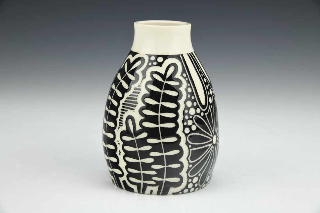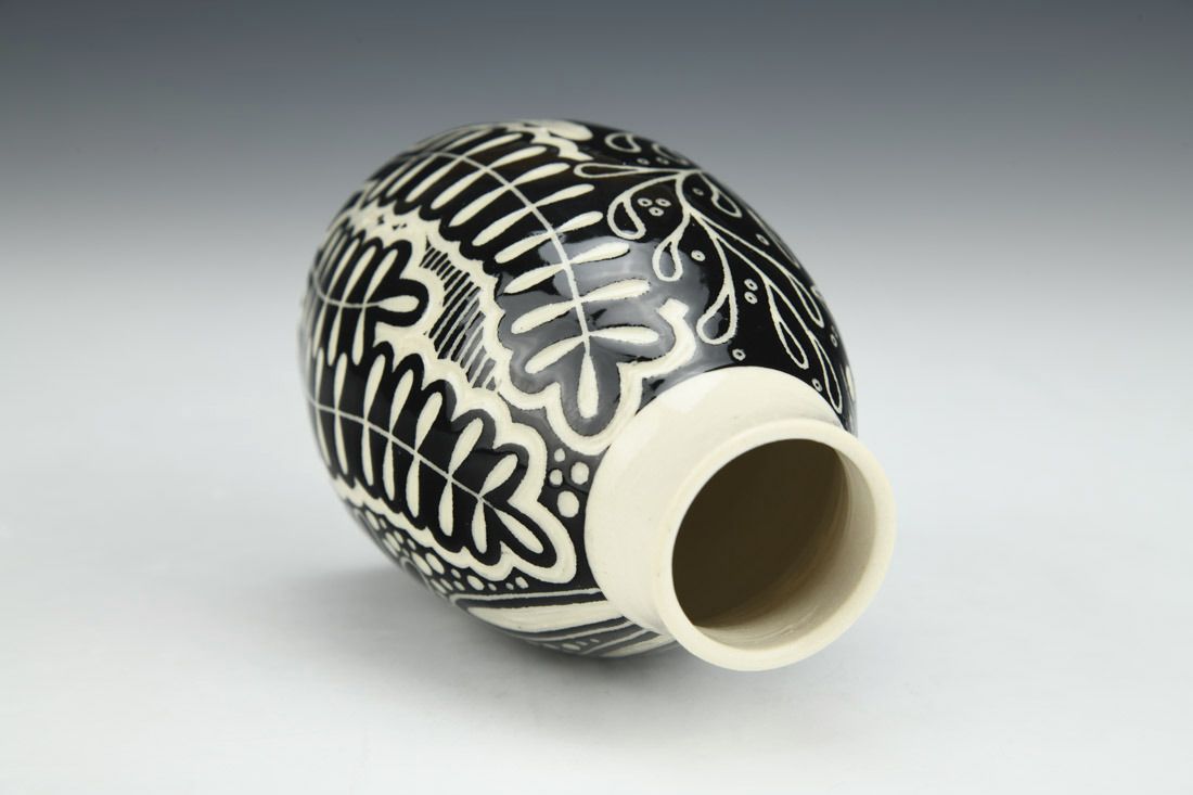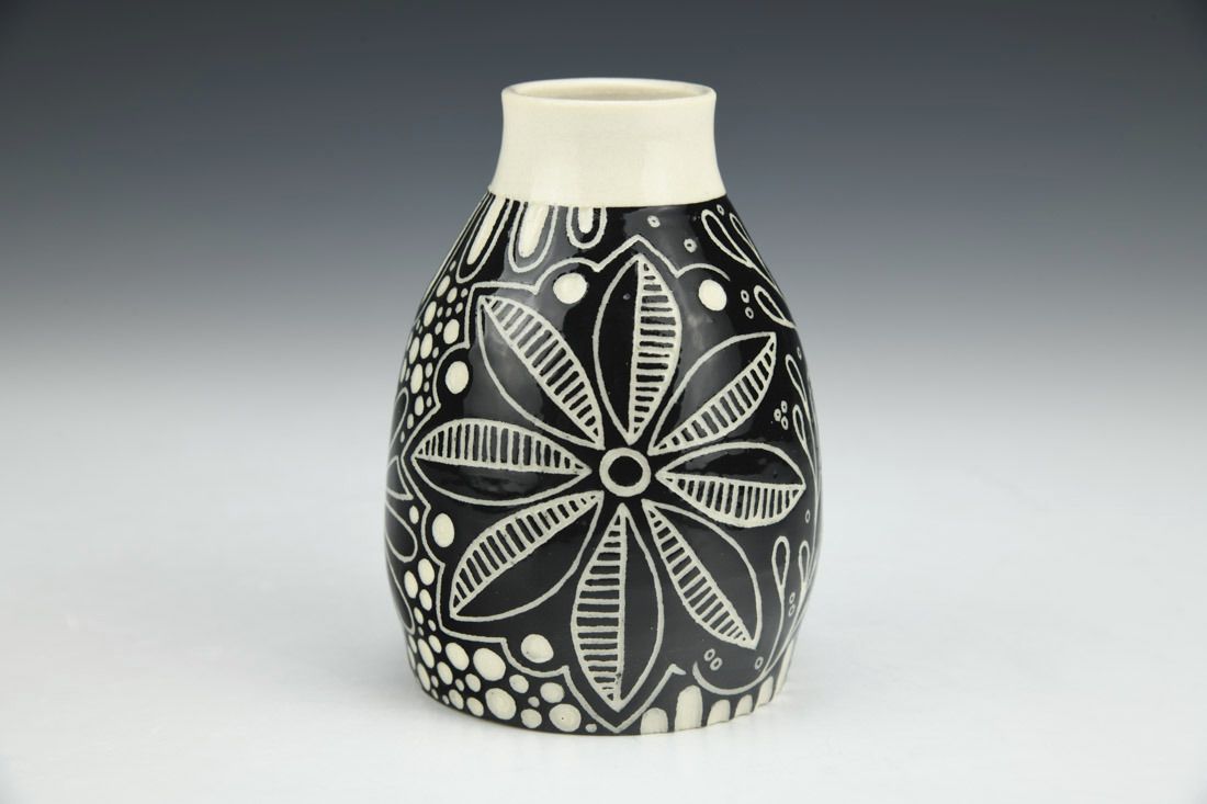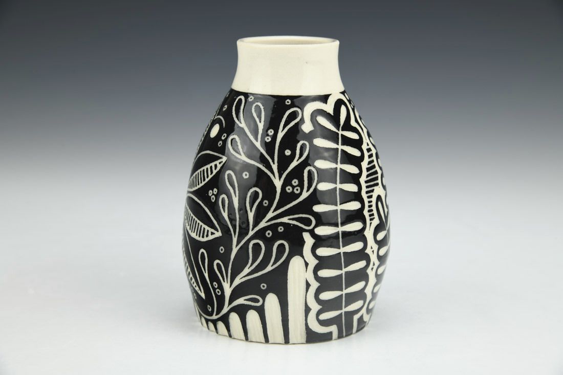 Kota porcelain, wheel thrown, jet black underglaze, cone 6 electric fired, 4 x 3 x 3 inches.