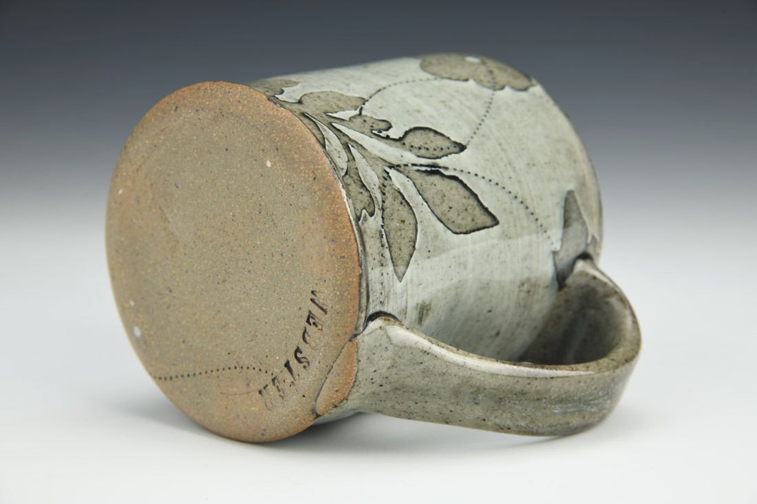 Fireclay stoneware, wheel thrown, cone 10 wood/soda fired, 4 x 4.75 x 3.5 inches.