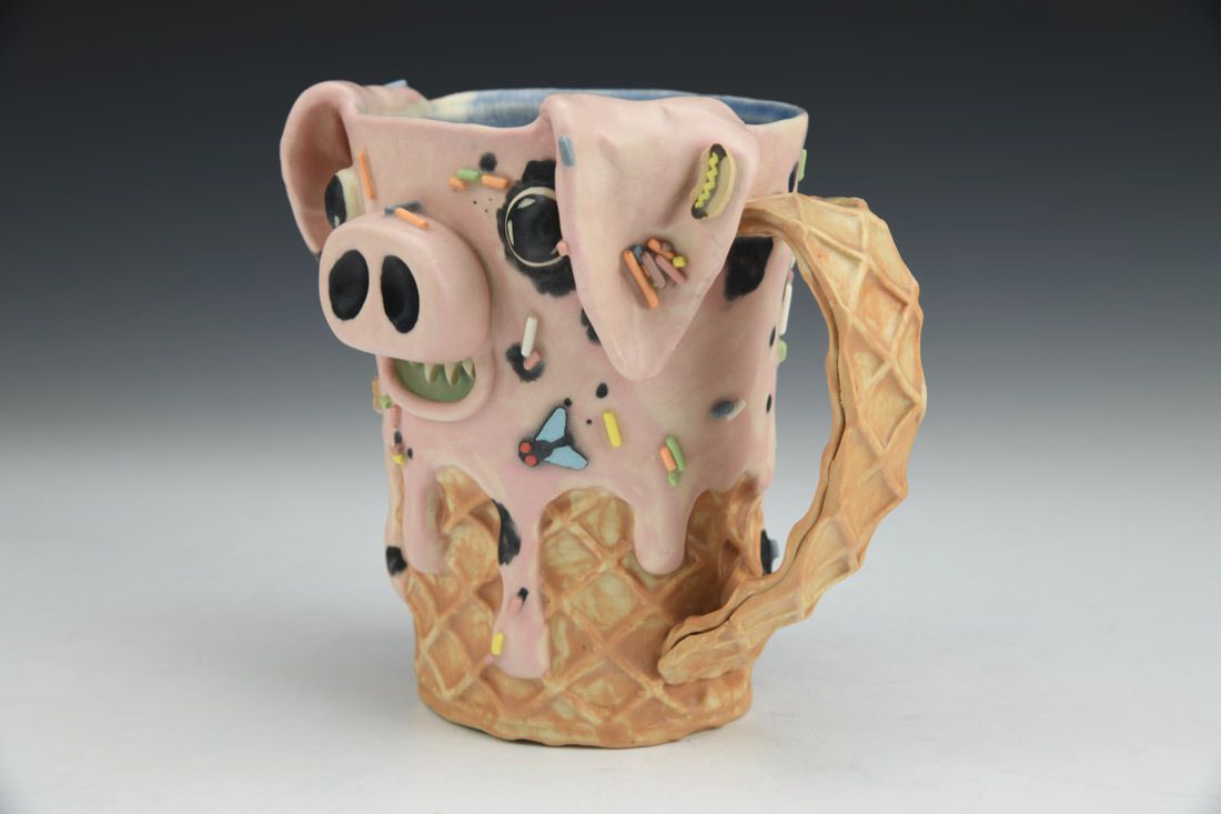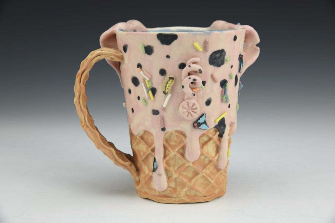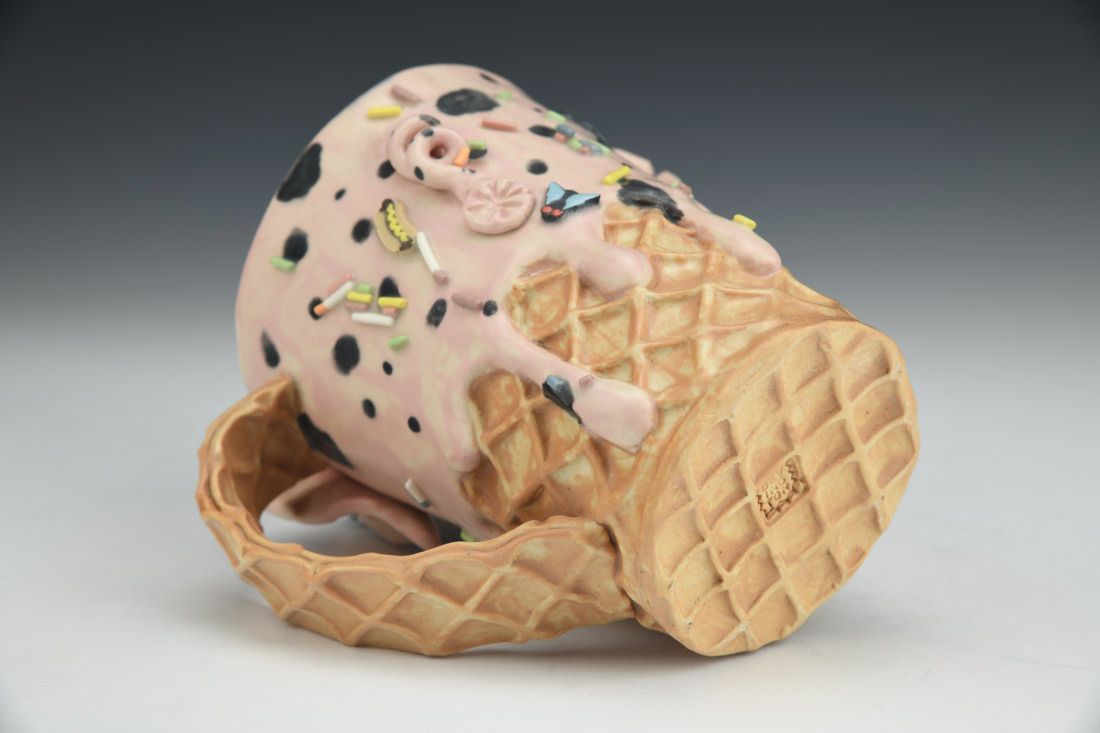 Stoneware, hand built, underglaze, glaze, cone 6 oxidation fired, 5 x 4.5 x 4.25 inches.