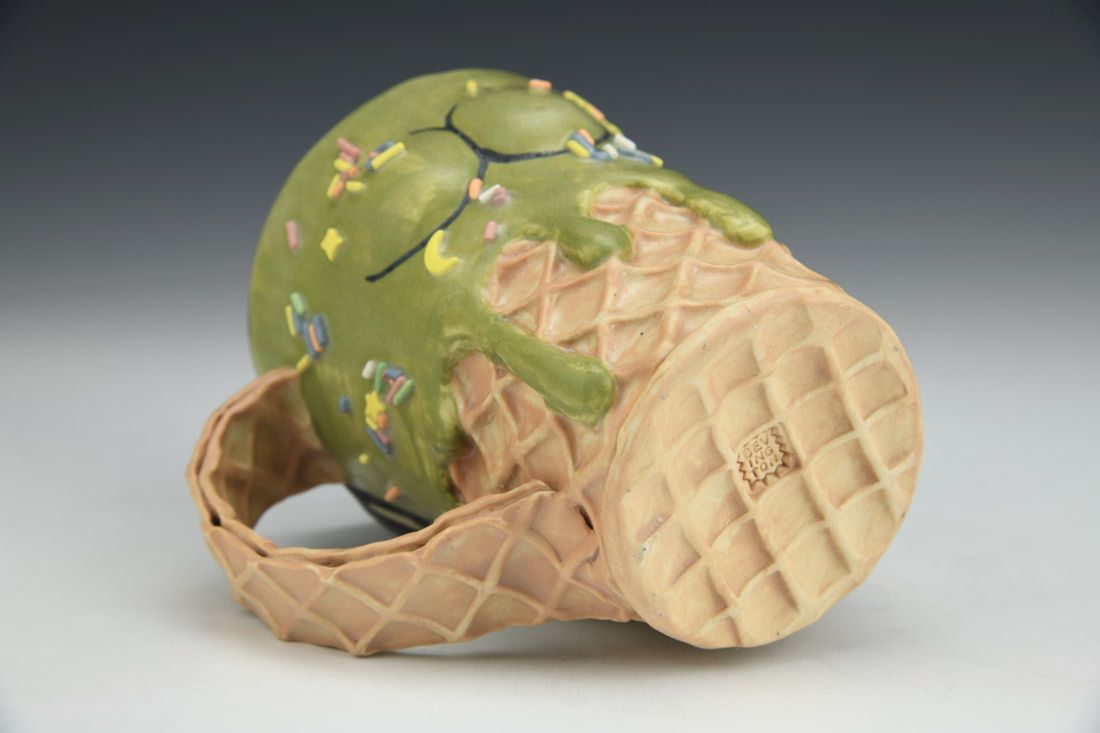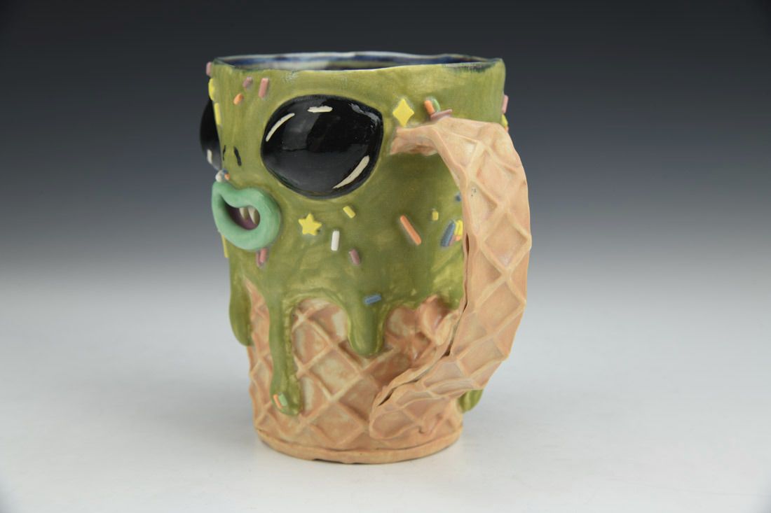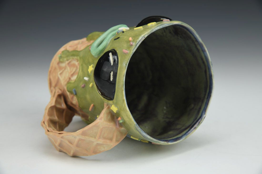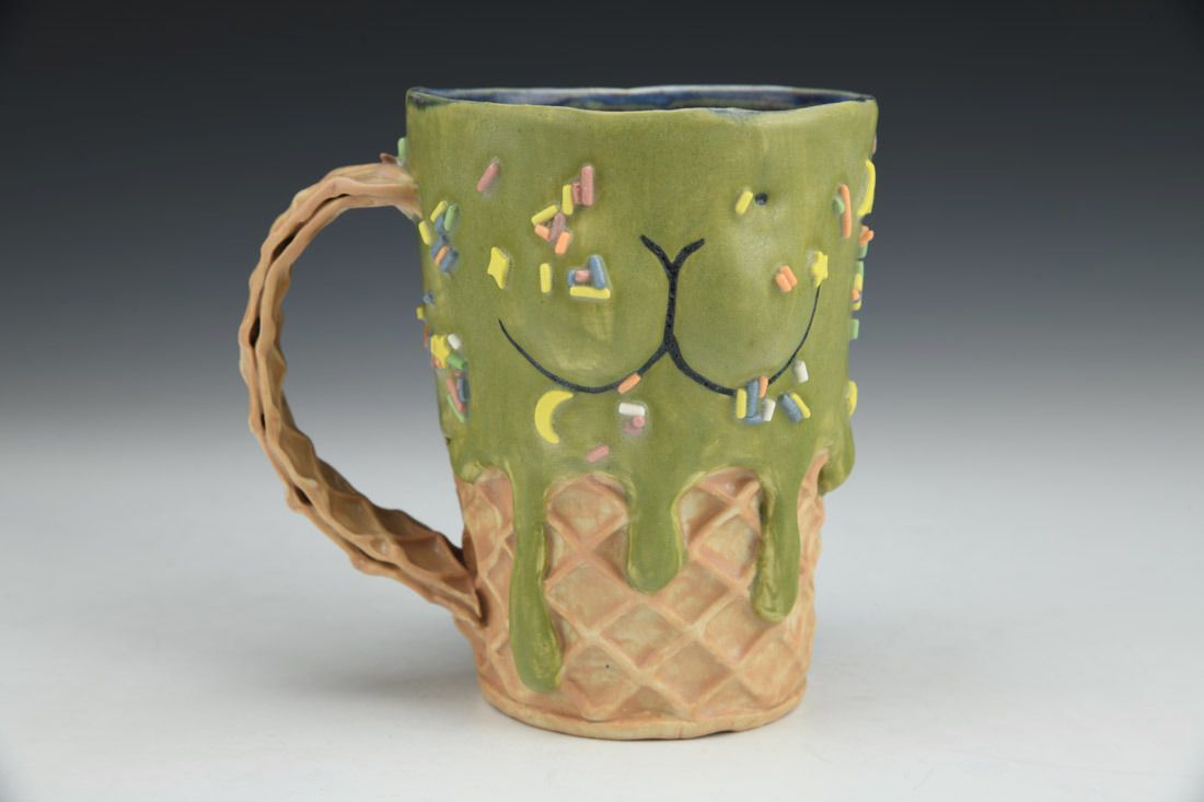 Stoneware, hand built, underglaze, glaze, cone 6 oxidation fired, 4.75 x 5 x 4 inches.
