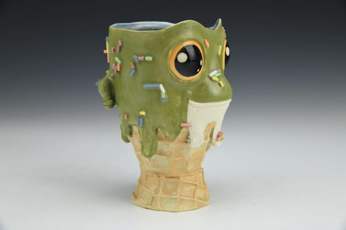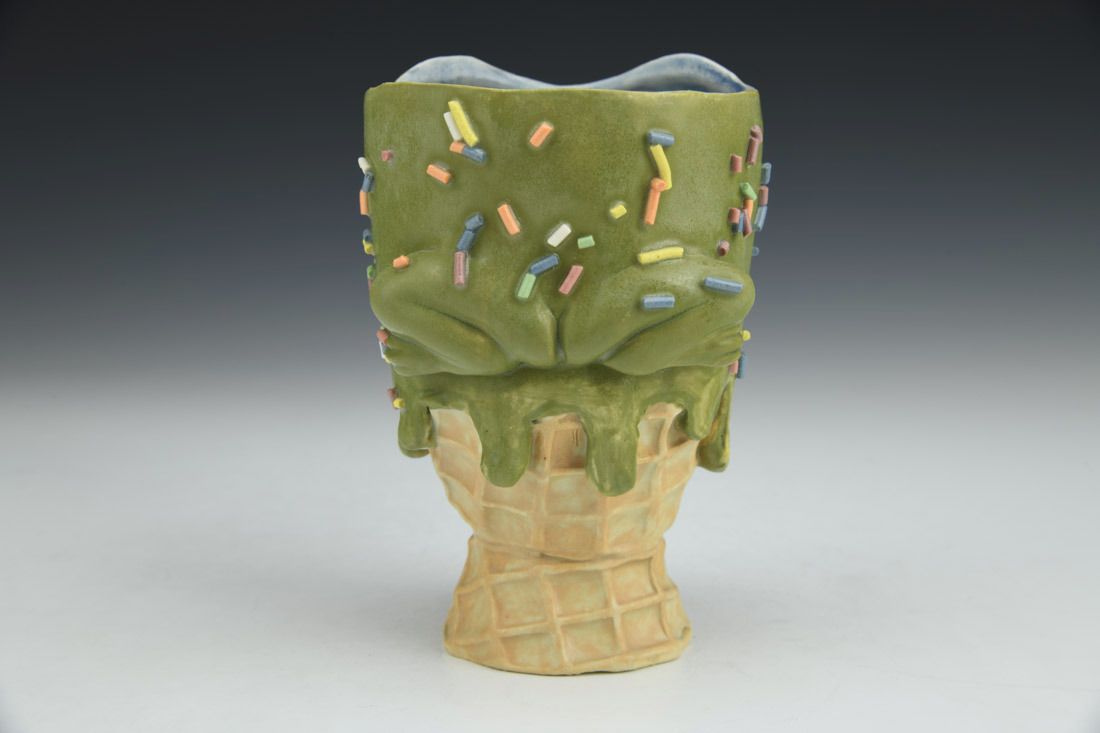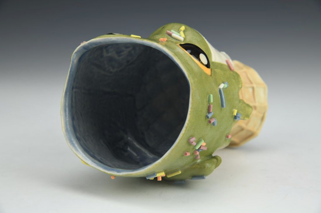 Stoneware, hand built, underglaze, glaze, cone 6 oxidation fired, 5 x 4 x 4 inches.