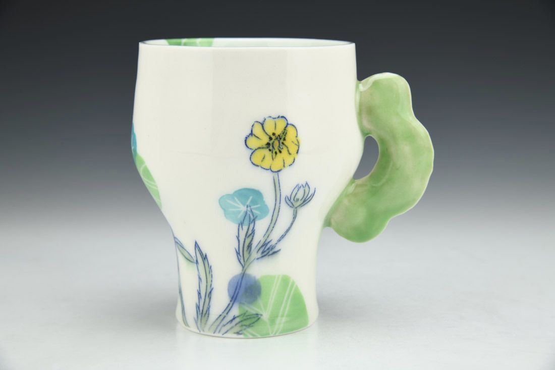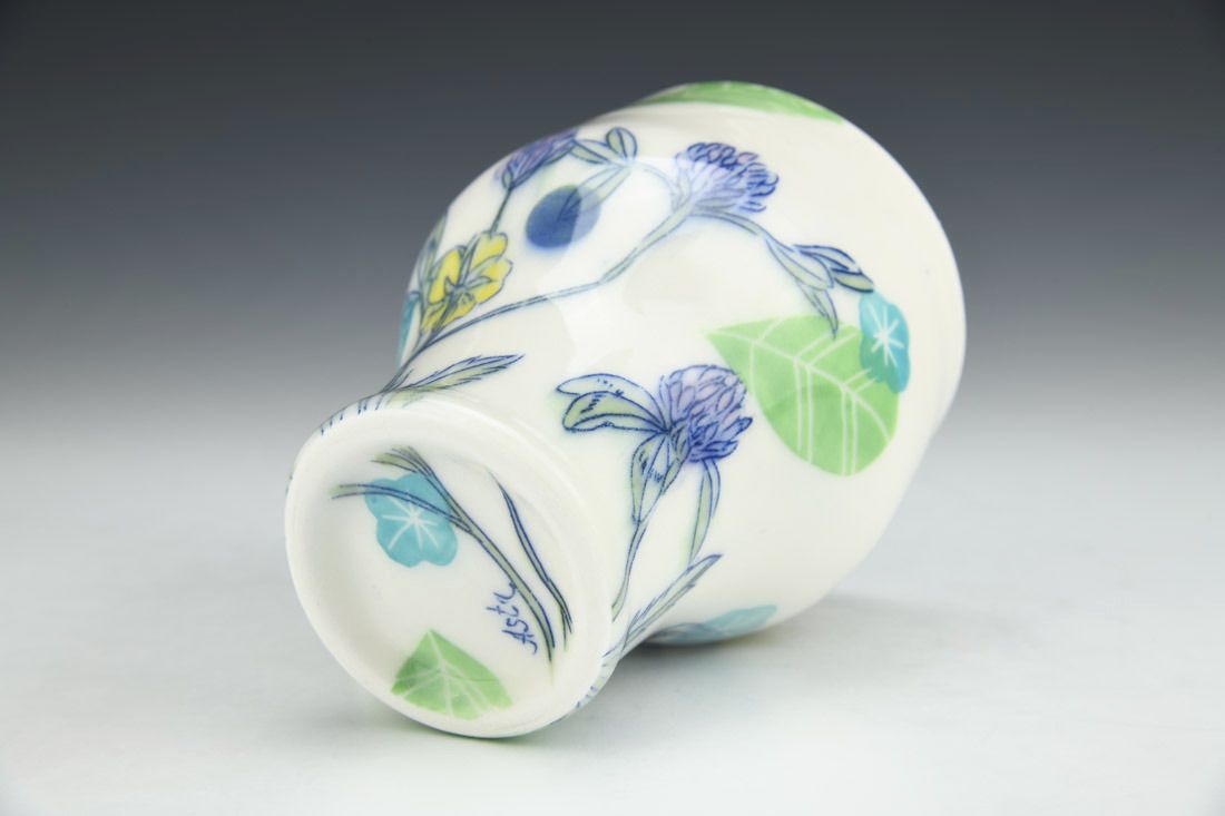 Porcelain, wheel thrown, cone 6 electric fired, 5 x 5.5 x 4 inches.