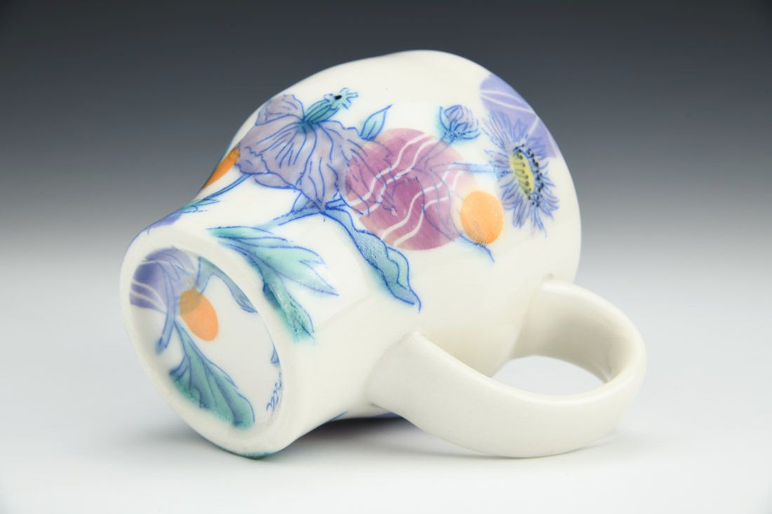 Porcelain, wheel thrown, cone 6 electric fired, 4.25 x 5.5 x 4 inches.