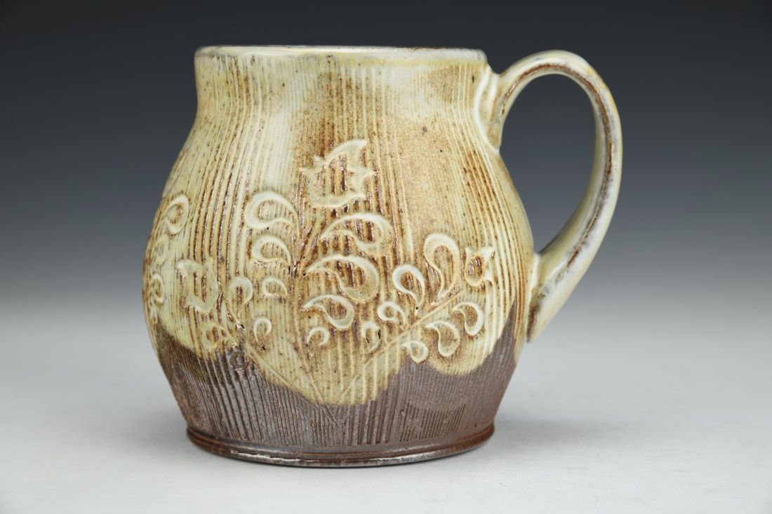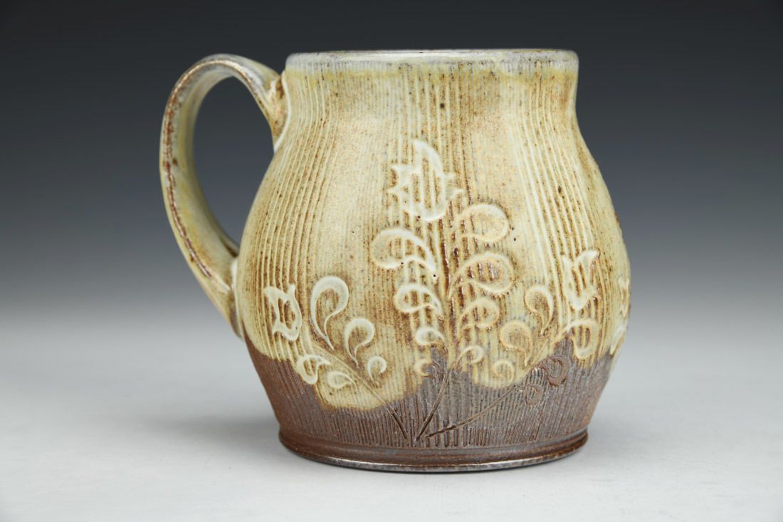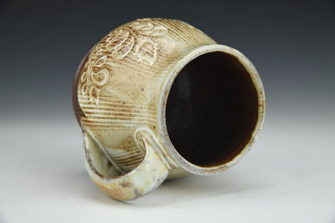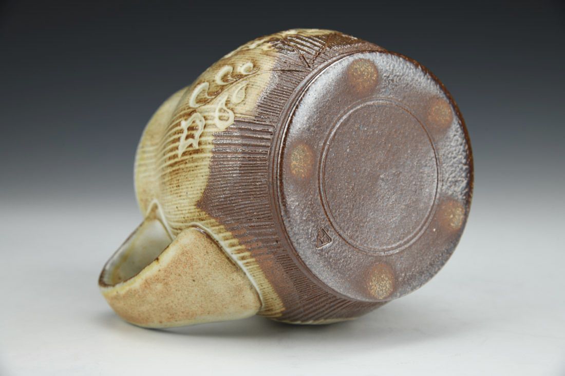 Local North Carolina clay, wheel thrown, slip, cone 10 soda/wood fired, 4 x 5 x 4 inches.