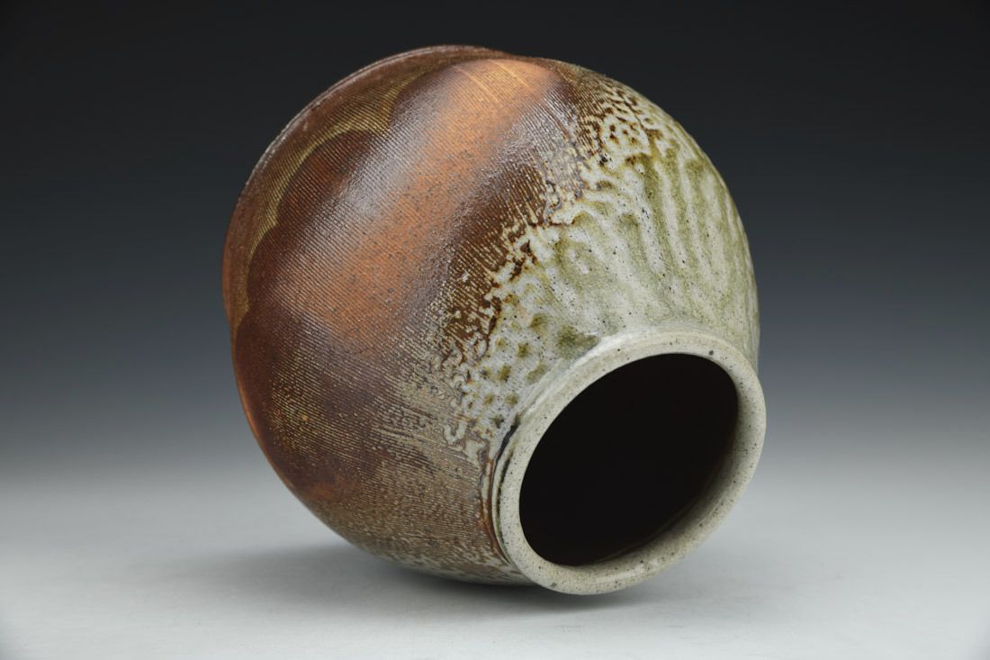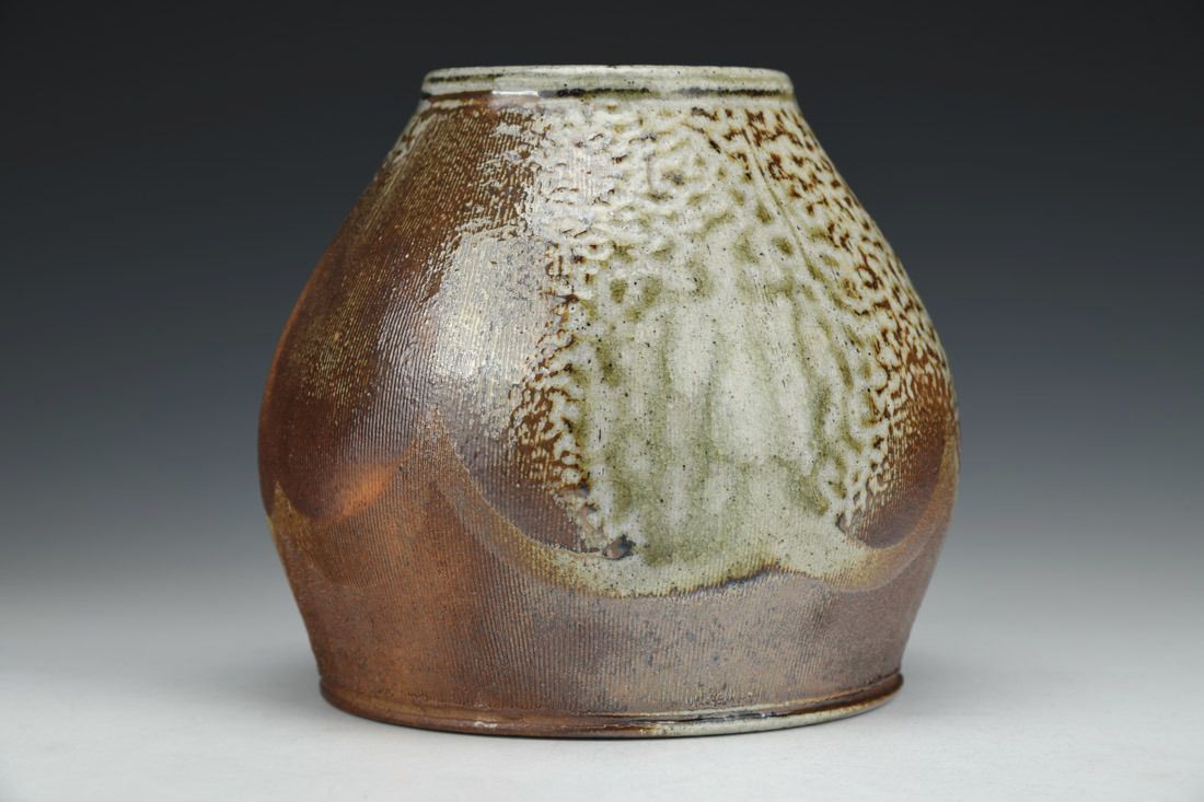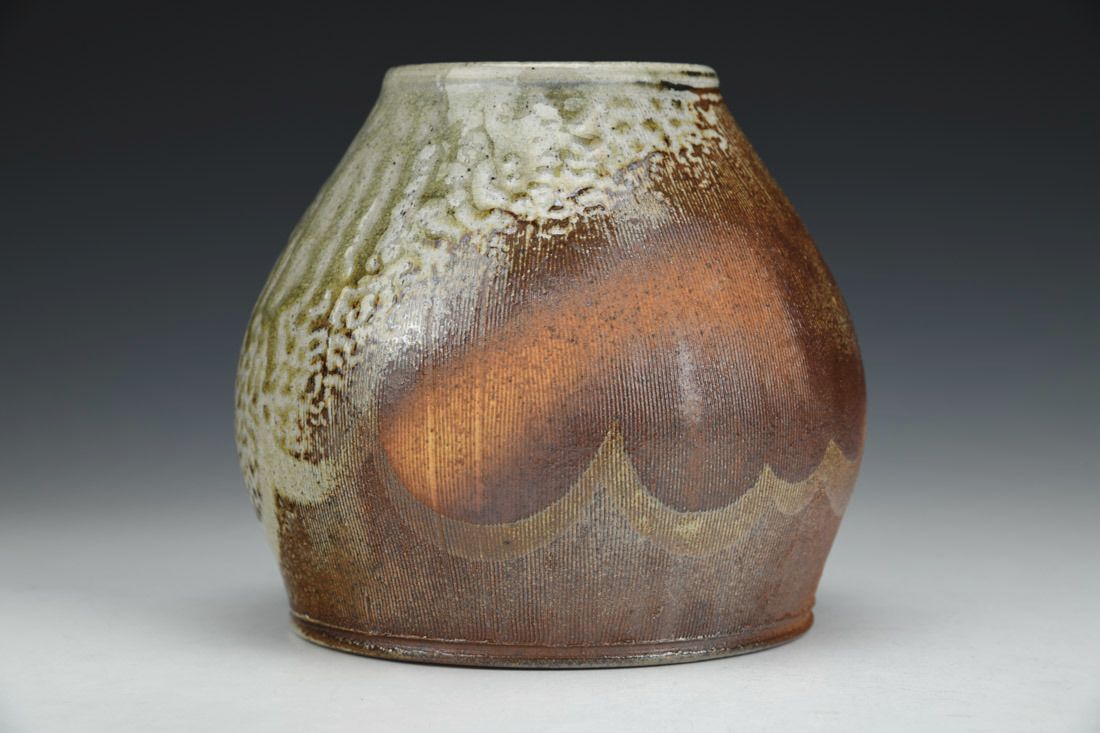 Local North Carolina clay, wheel thrown, slip, cone 10 soda/wood fired, 6 x 6 x 6 inches.