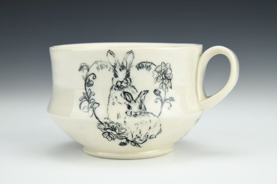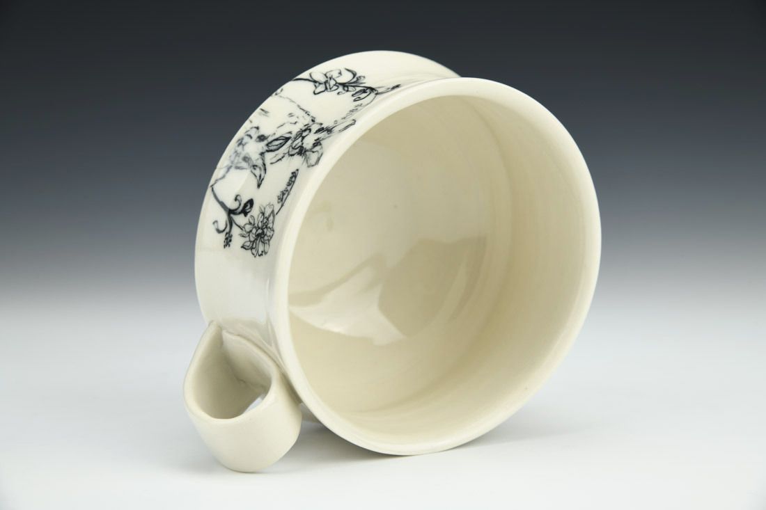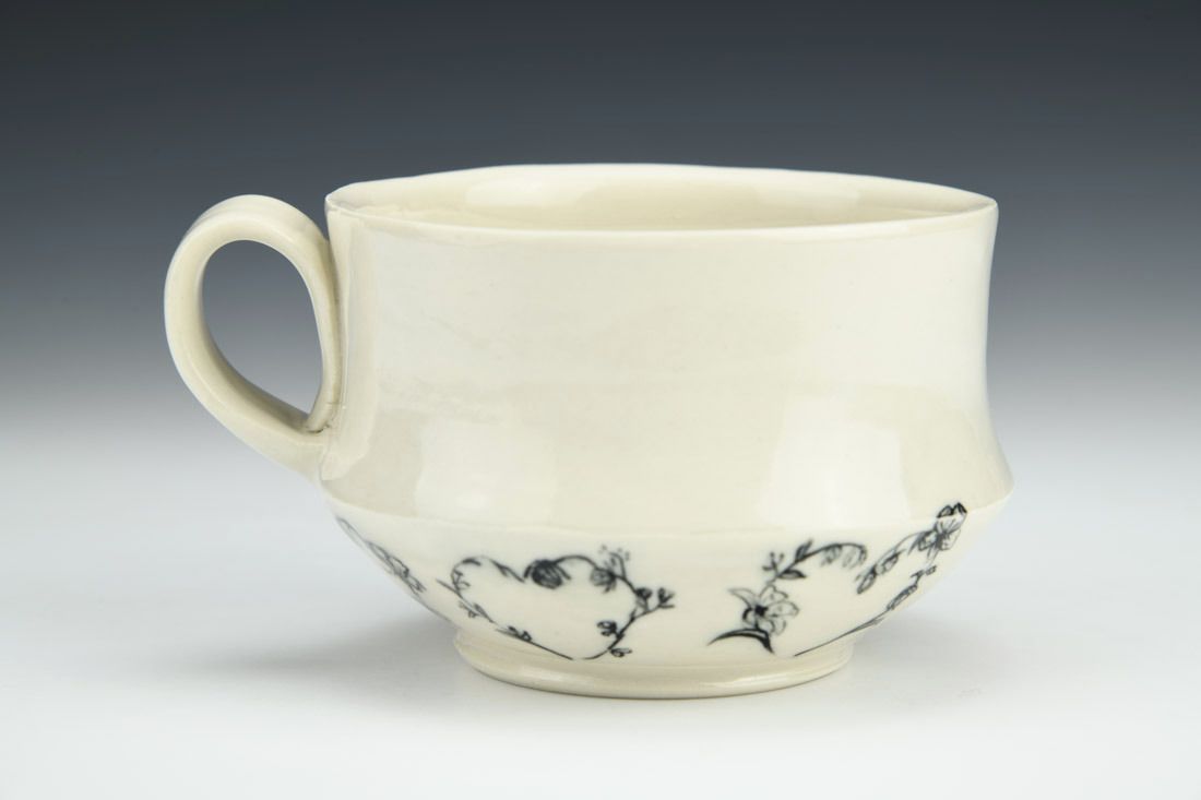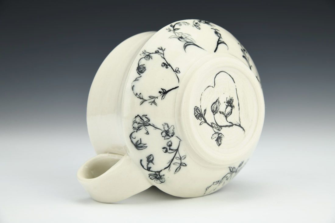 Porcelain, wheel thrown, painted underglaze, clear glaze, cone 6 electric fired, 3 x 5 x 4 inches.