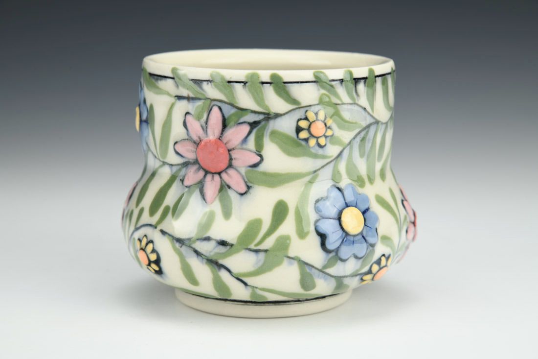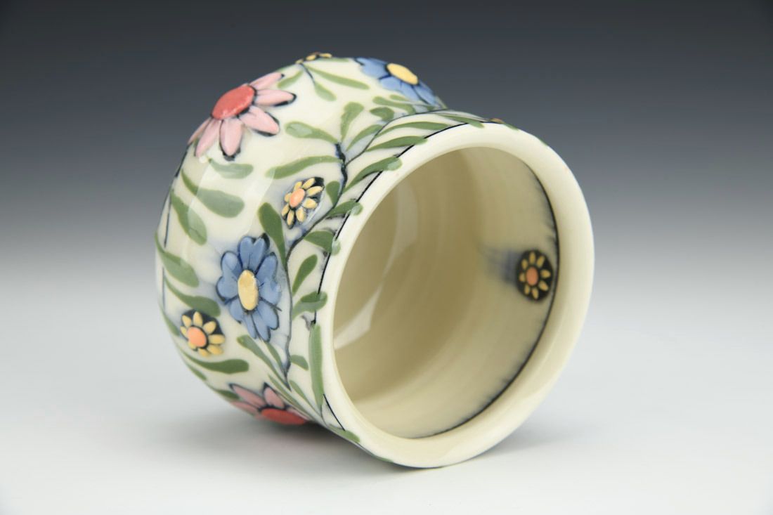 Porcelain, wheel thrown, cone 6 fired, 3.25 x 3.25 x 3.25 inches.