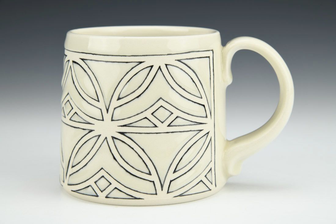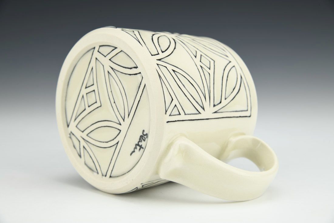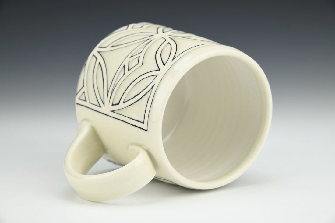 Porcelain, wheel thrown, underglaze, glaze, cone 6 oxidation fired, 3.5 x 5 x 3.75 inches.