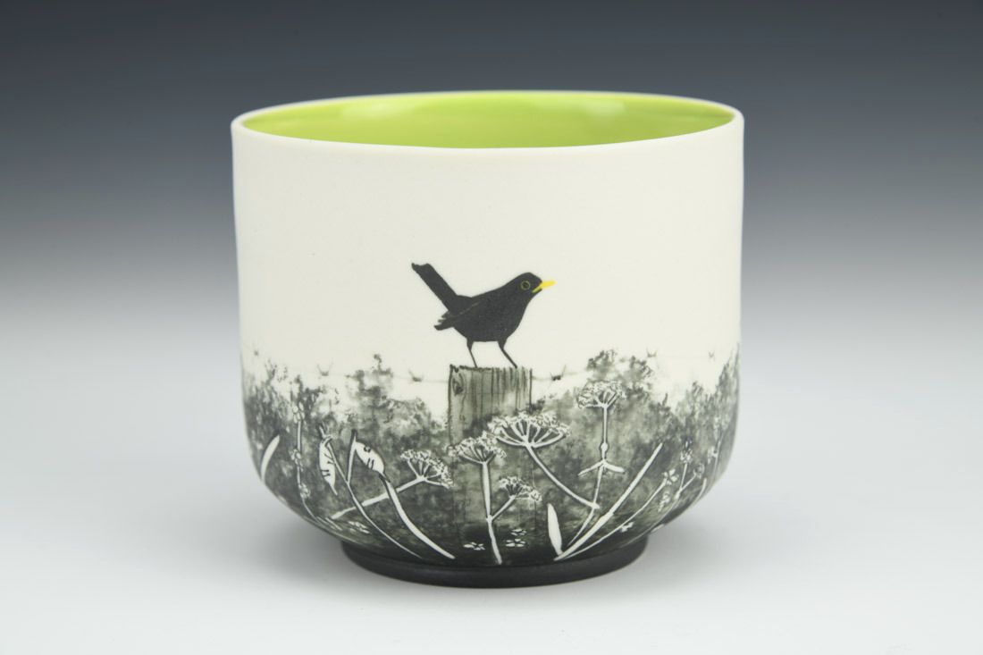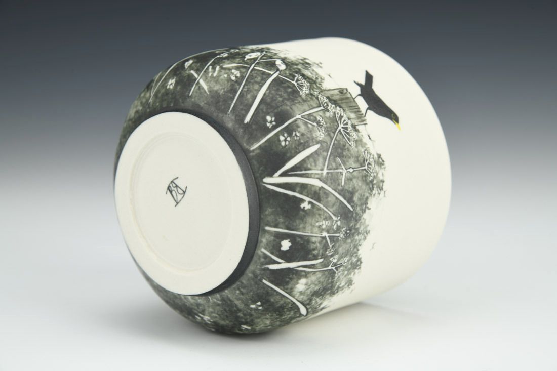 Porcelain, hand built, hand painted, 3 x 3.5 x 3.5 inches.