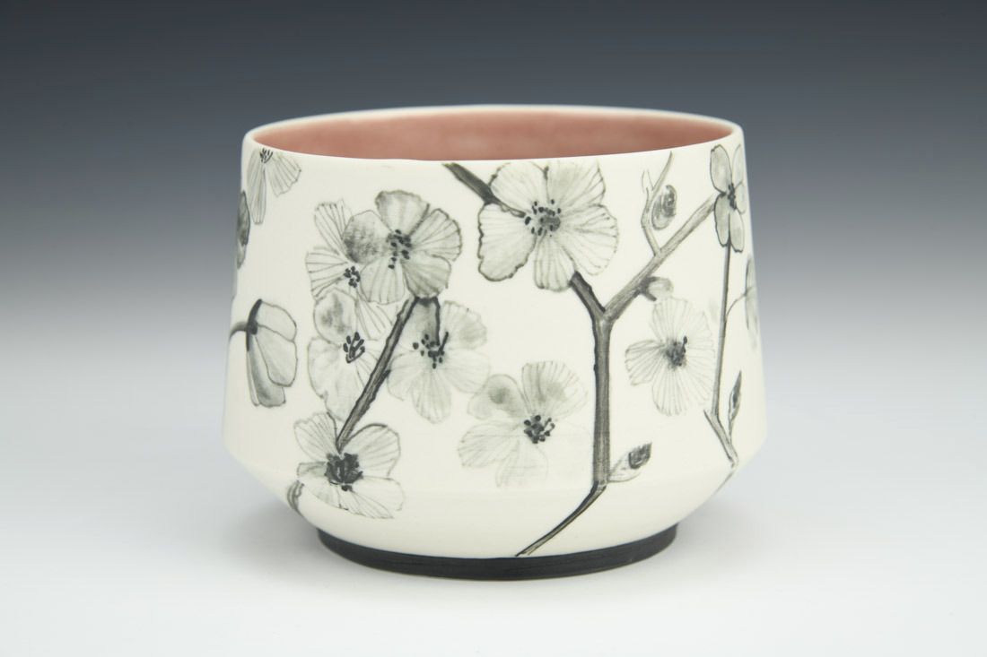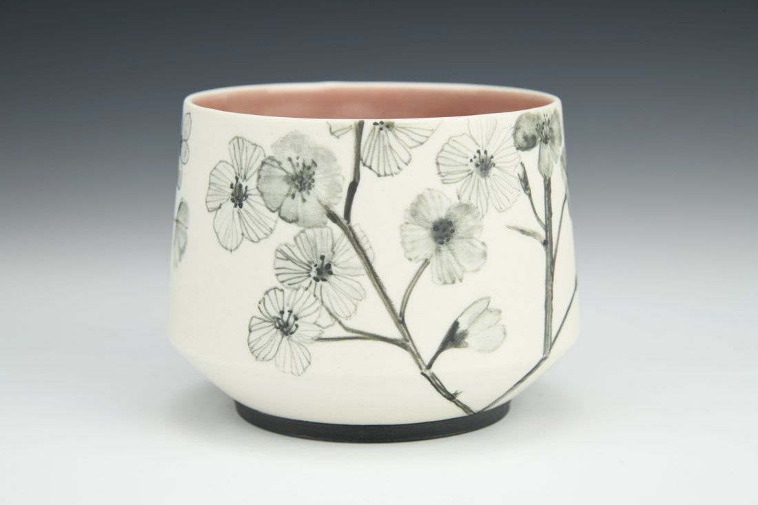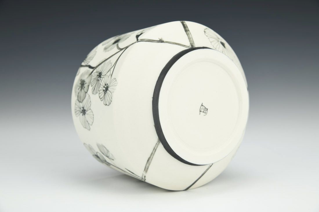 Porcelain, hand built, hand painted, 3 x 3.5 x 3.5 inches.