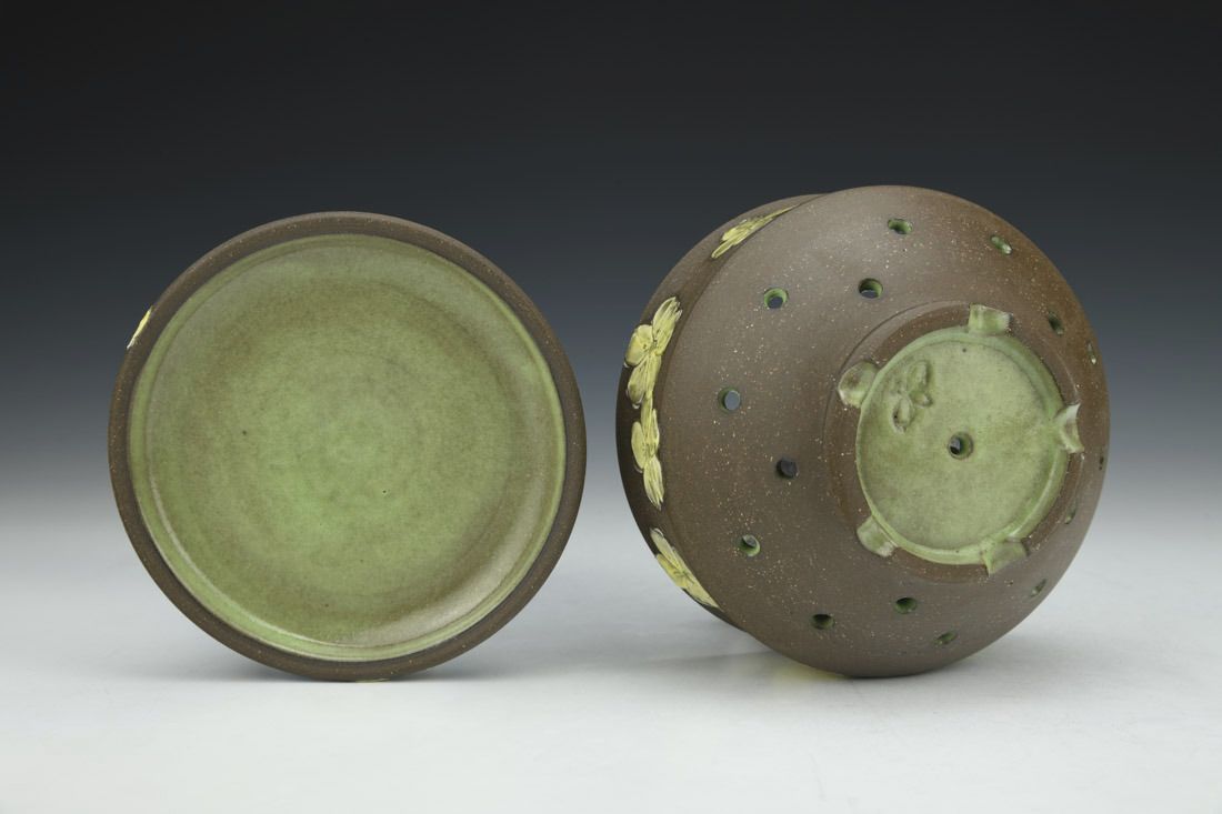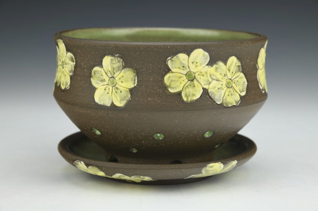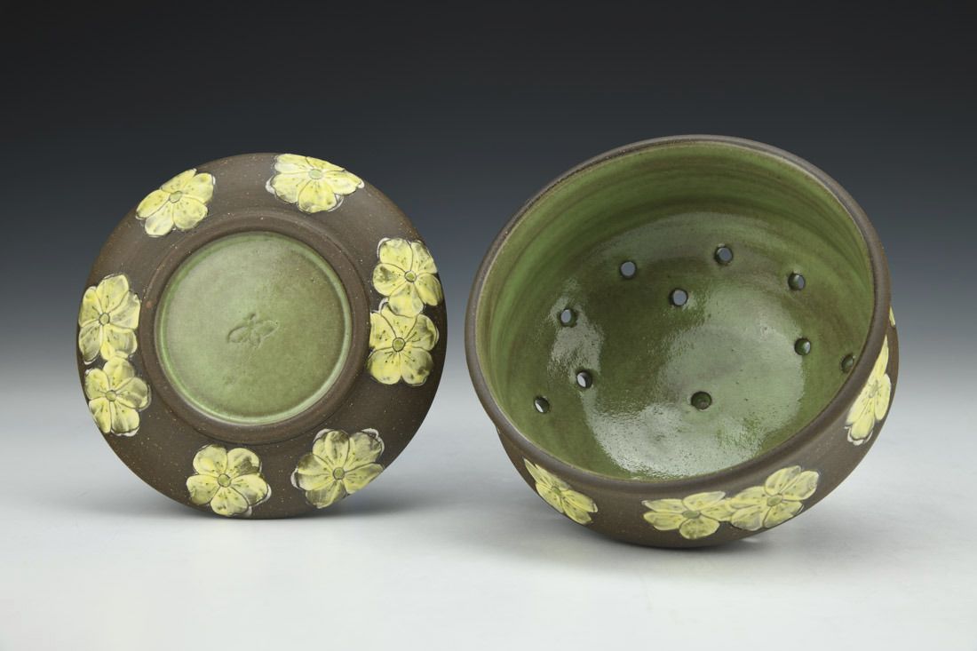 Stoneware, wheel thrown, underglaze, glaze, cone 5 electric fired, 3.25 x 5 x 5 inches.