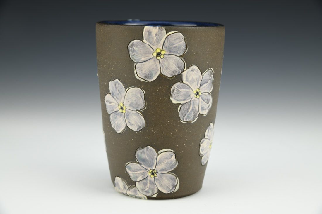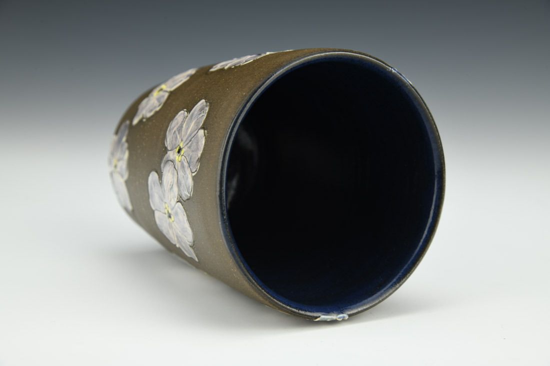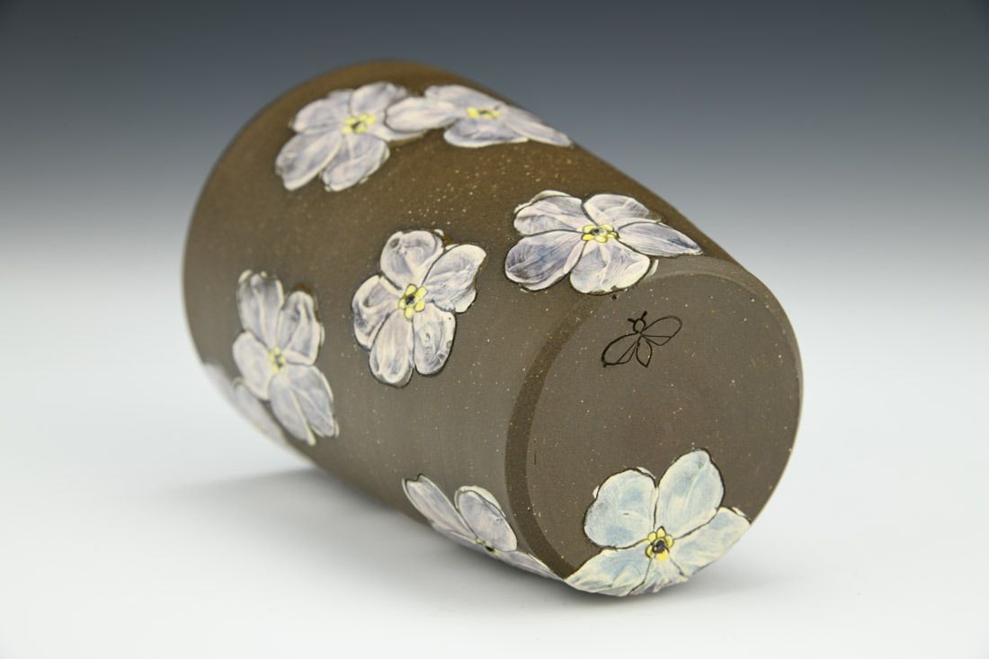 Stoneware, wheel thrown, slip, underglaze, glaze, cone 5 electric fired, 4.25 x 3.25 x 3.25 inches.