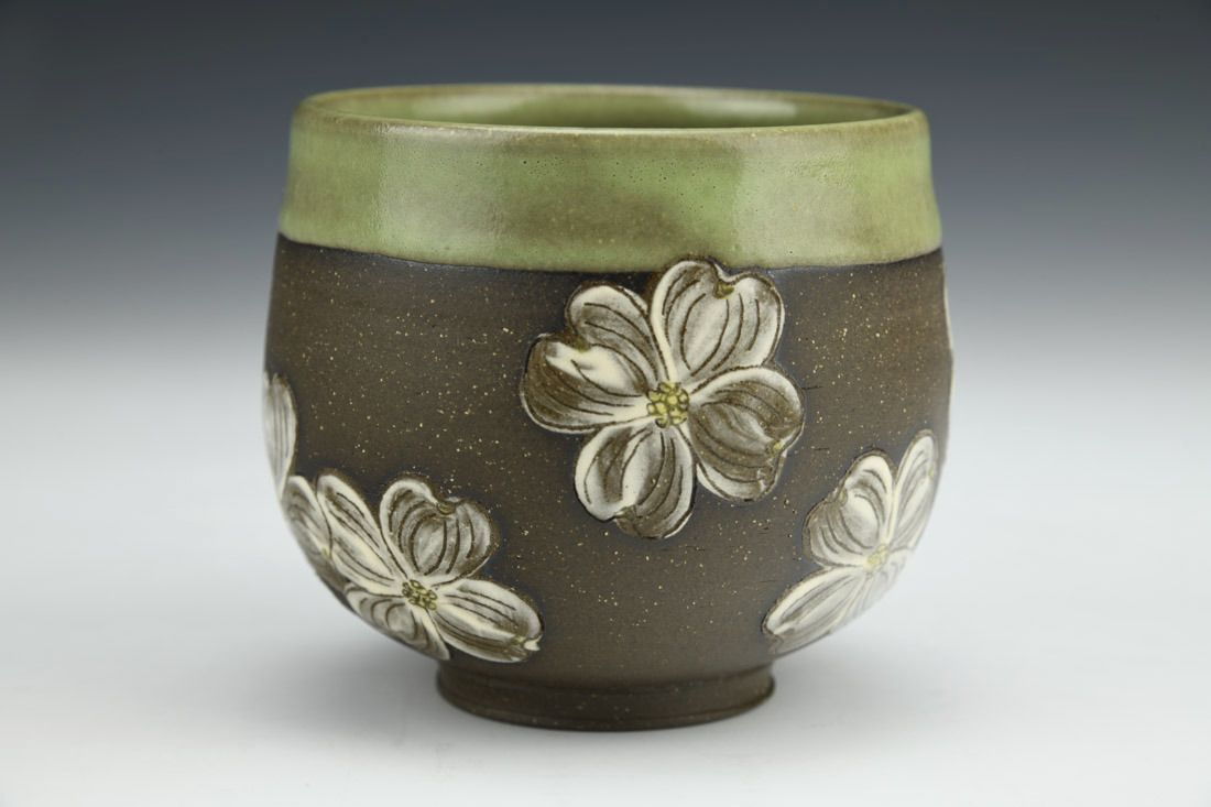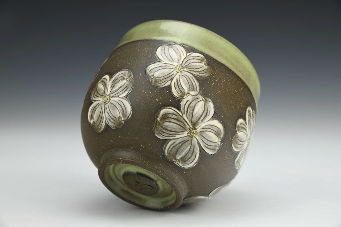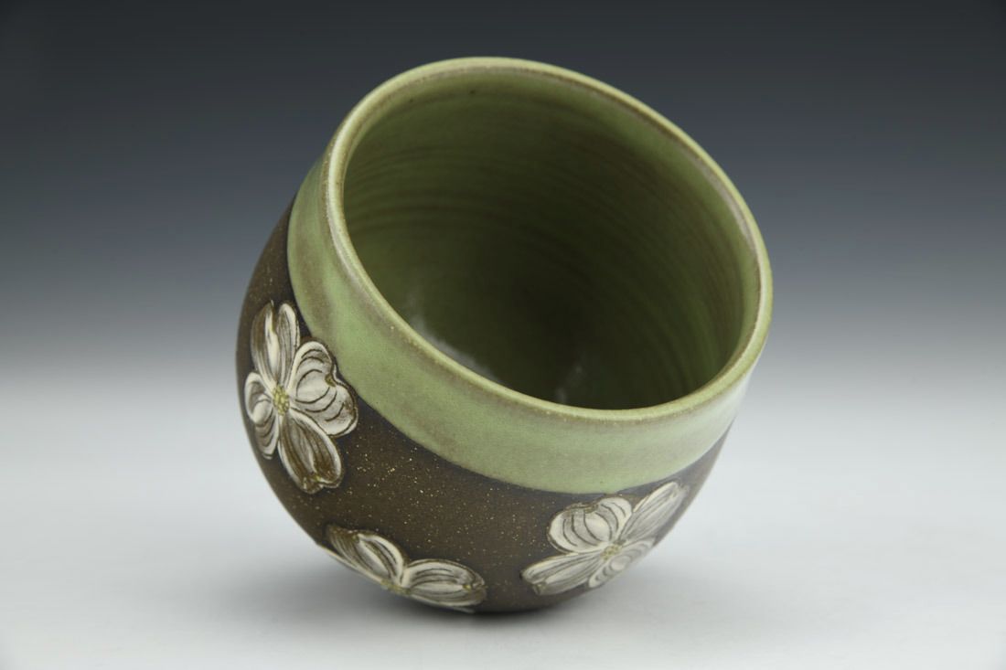 Stoneware, wheel thrown, slip, underglaze, glaze, cone 5 electric fired, 3.75 x 4 x 4 inches.