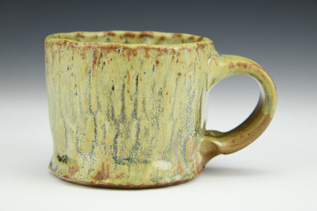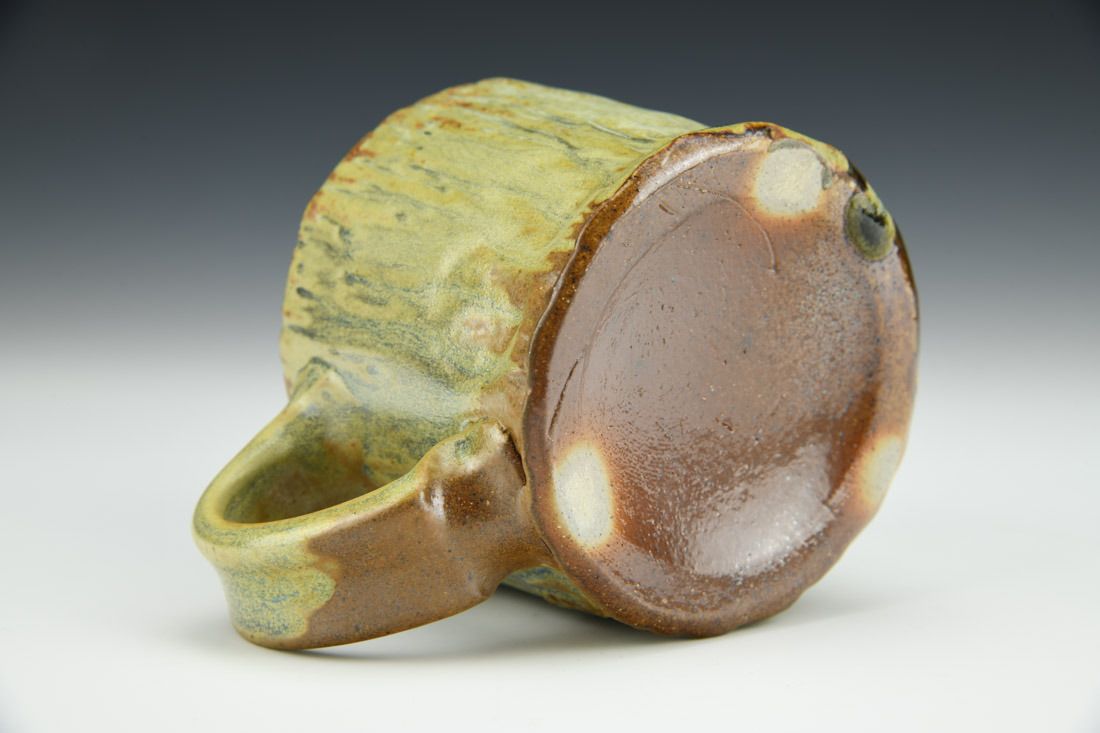 Porcelain, wheel thrown, stamped, cone 10 salt fired, 3 x 5.25 x 3.5 inches.