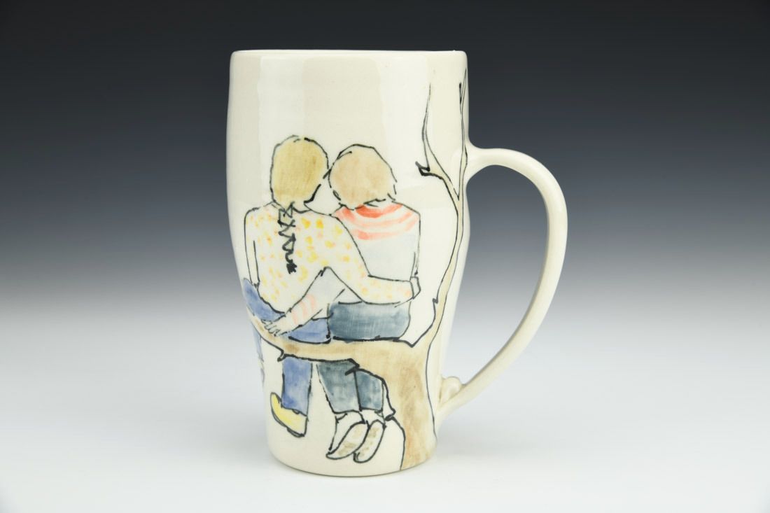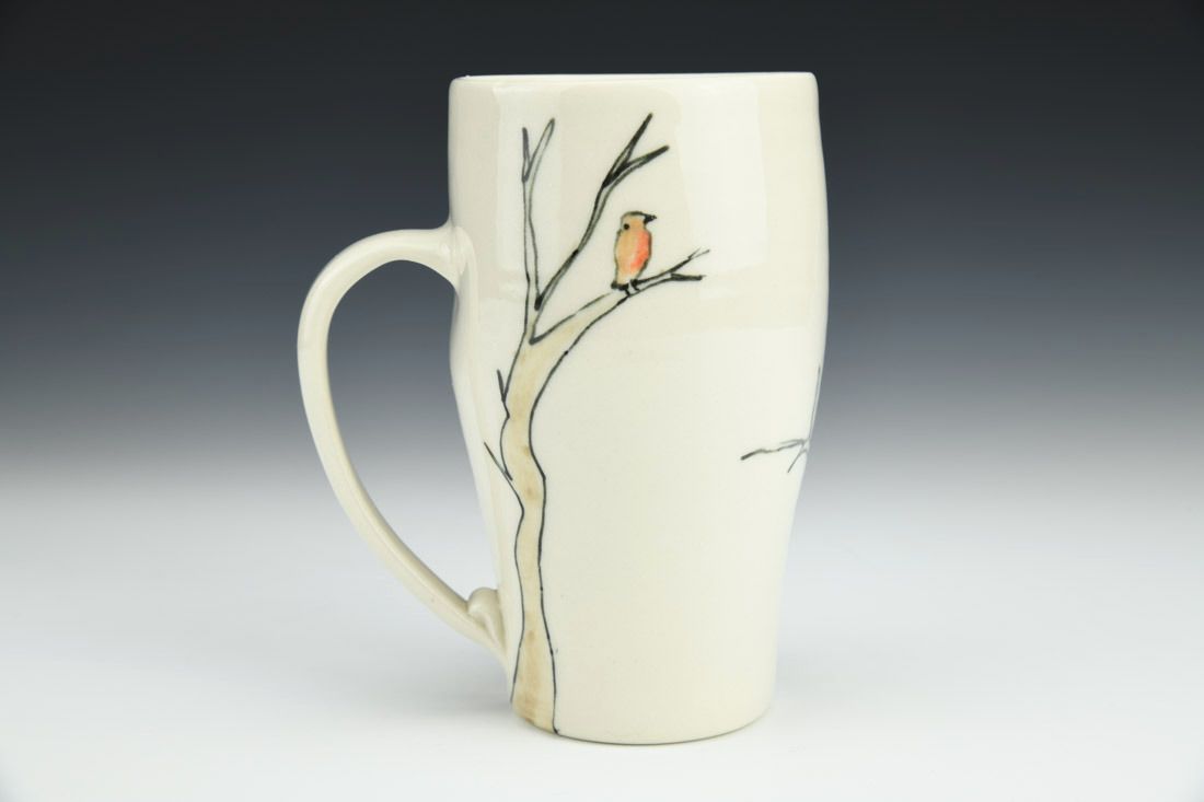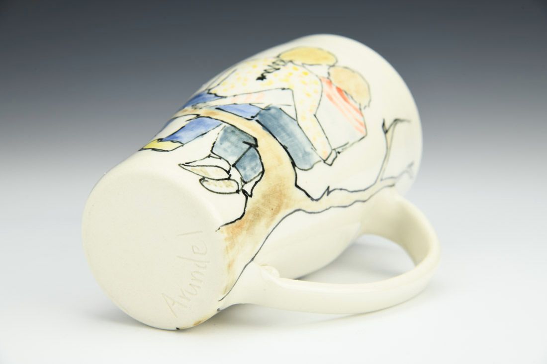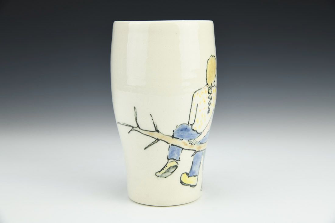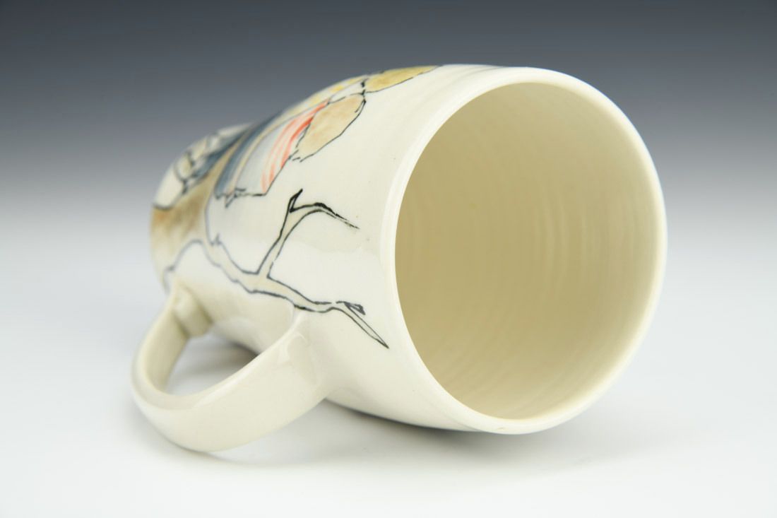 Porcelain, wheel thrown, fineliner underglaze, cone 6 electric fired, 5.5 x 5 x 3 inches.