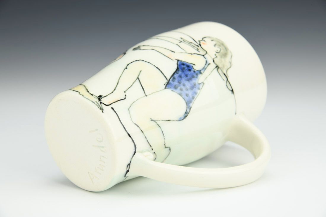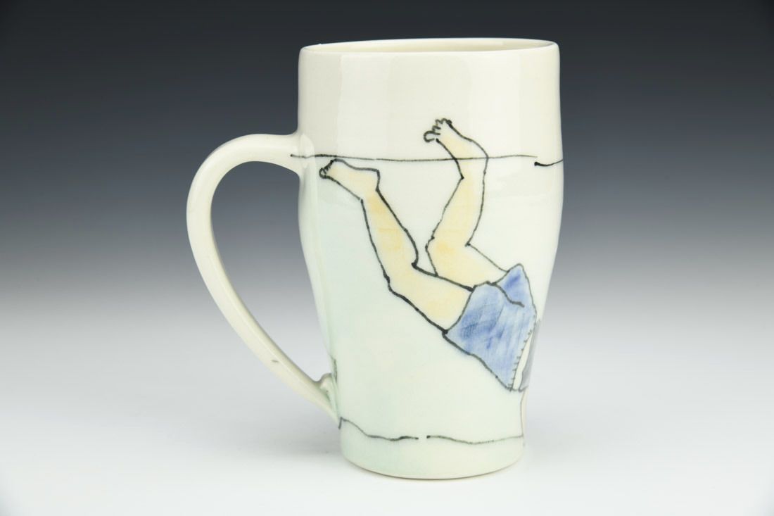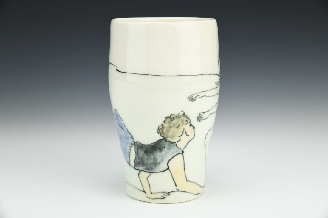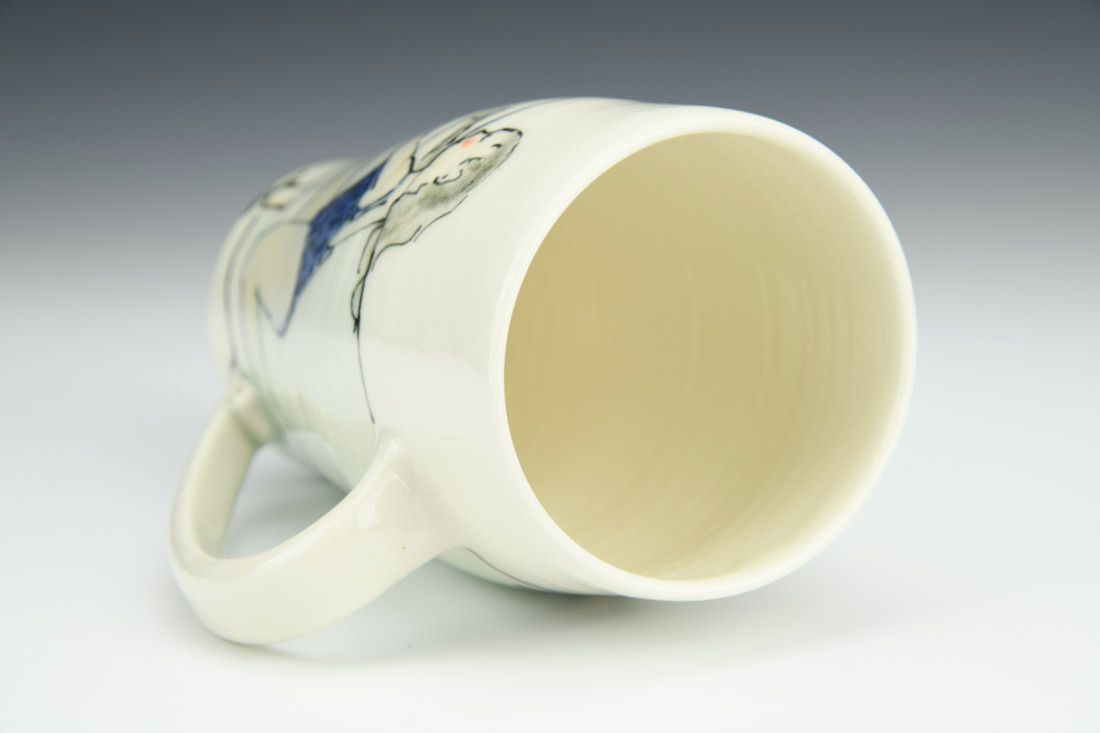 Porcelain, wheel thrown, finliner underglaze, cone 6 electric fired, 5.5 x 5 x 3 inches.