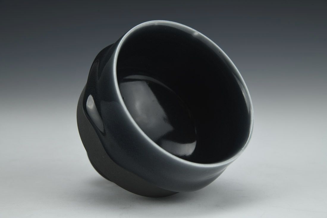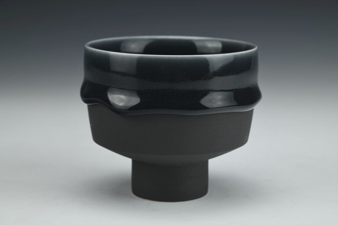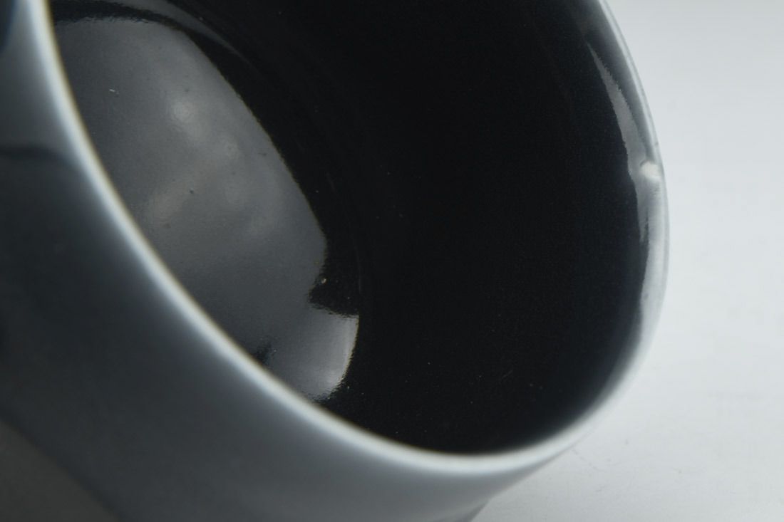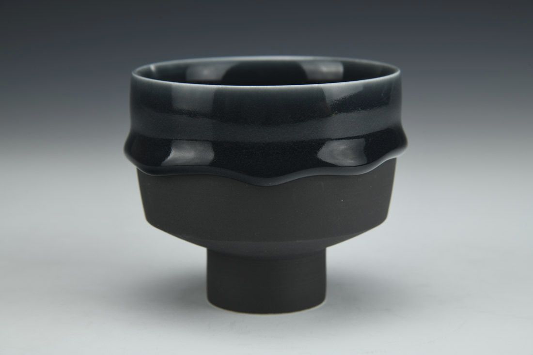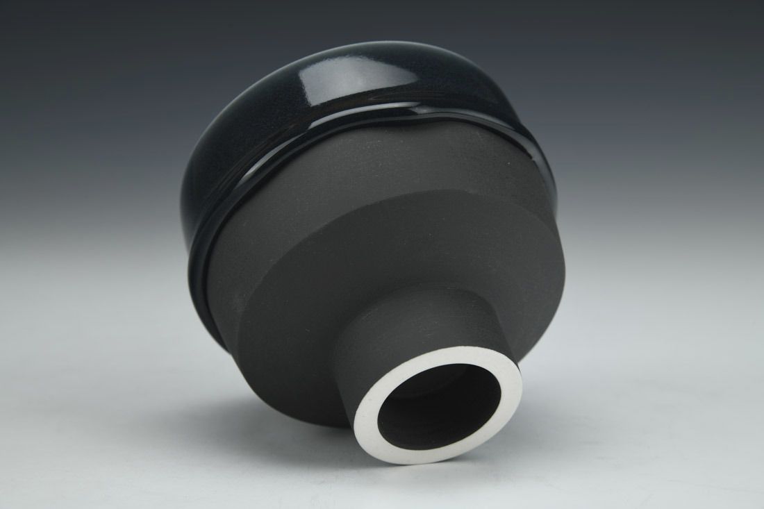 Porcelain, wheel thrown, underglaze, glaze, cone 6 electric fired, 3 x 3.75 x 3.75 inches.