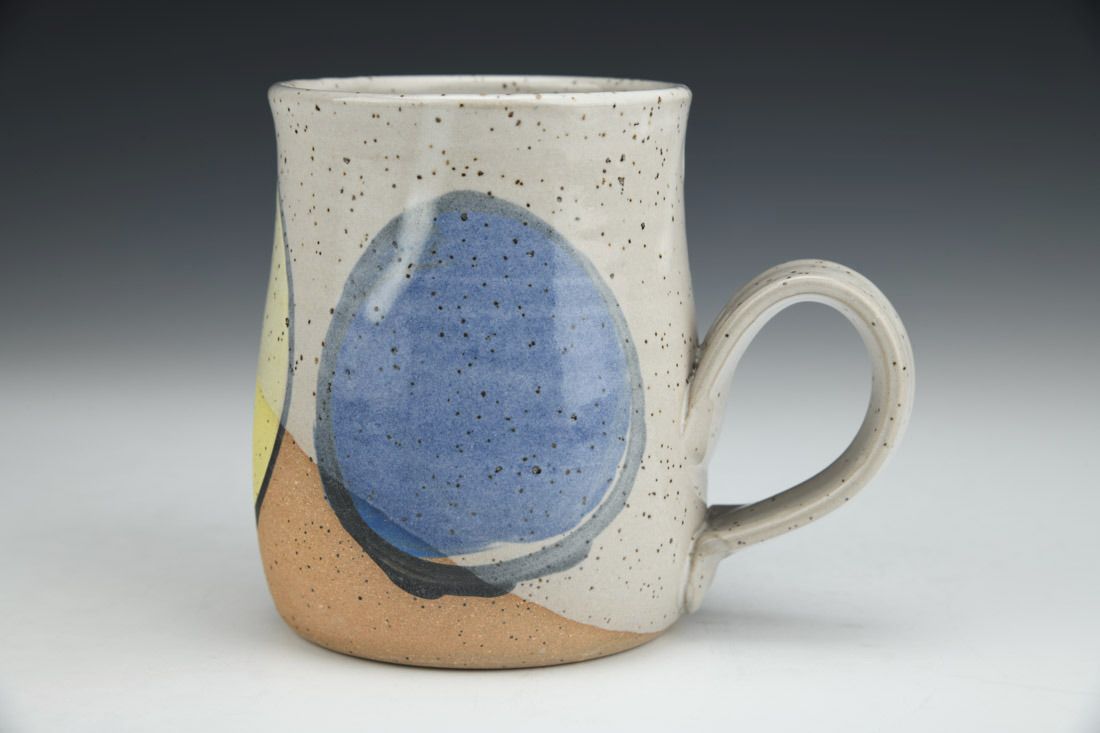 Stoneware, wheel thrown, underglaze, glaze, cone 6 electric fired, foot polished with diamond pads, 4 x 4.5 x 3.5 inches.