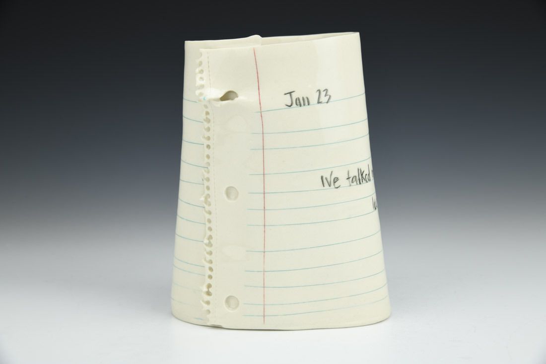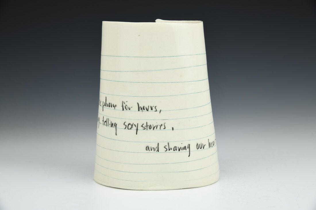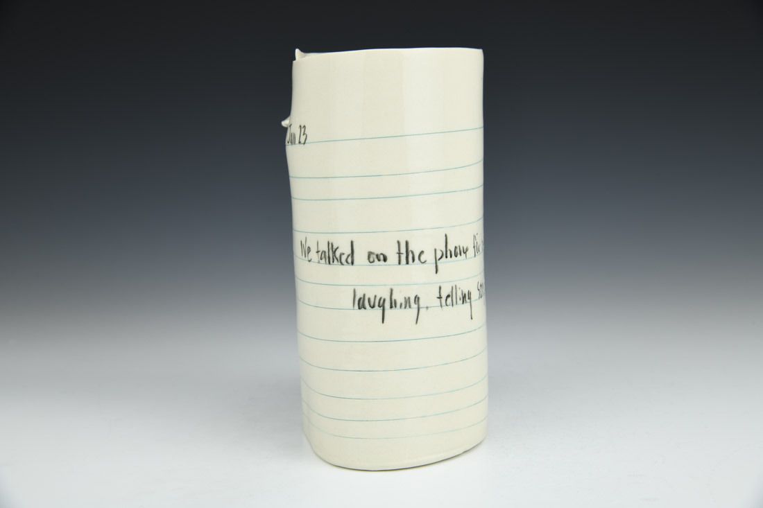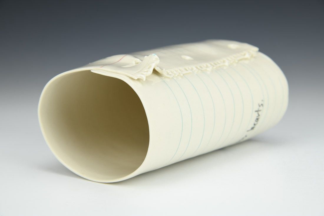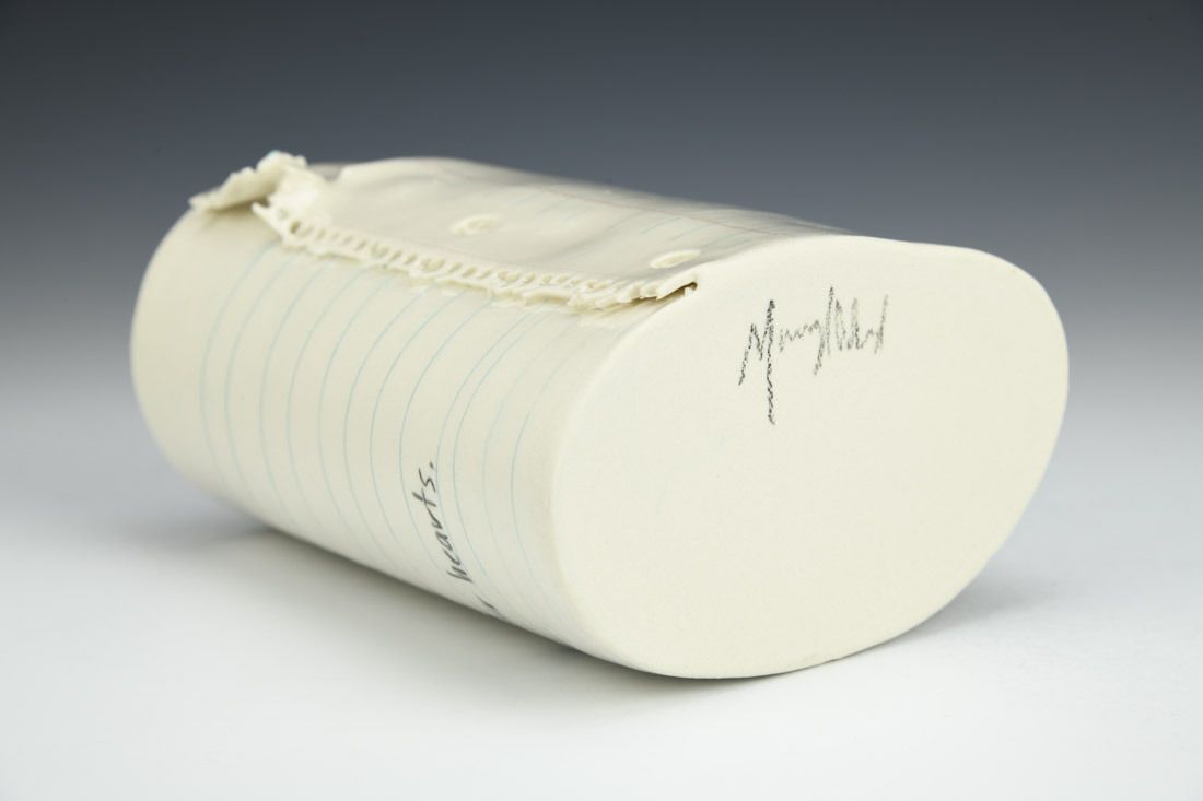 Porcelain, hand built, inlaid underglaze, cone 6 oxidation fired, 5.5 x 4.5 x 3.5 inches.
