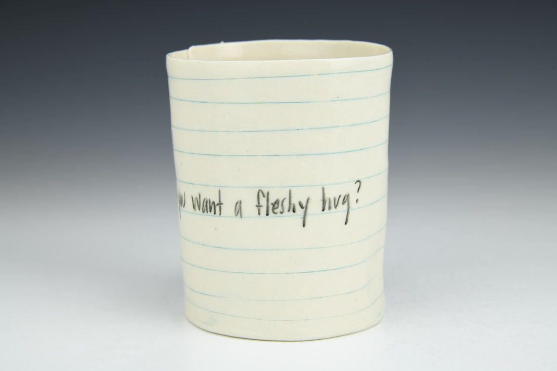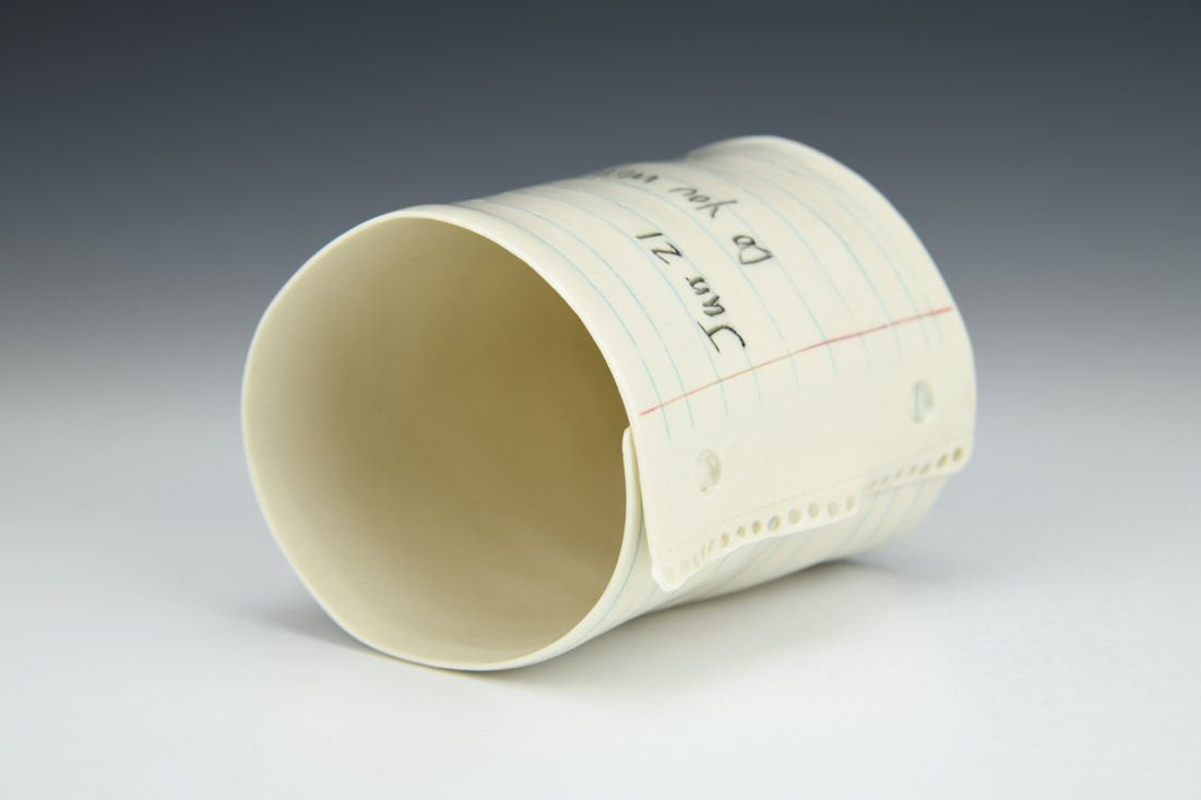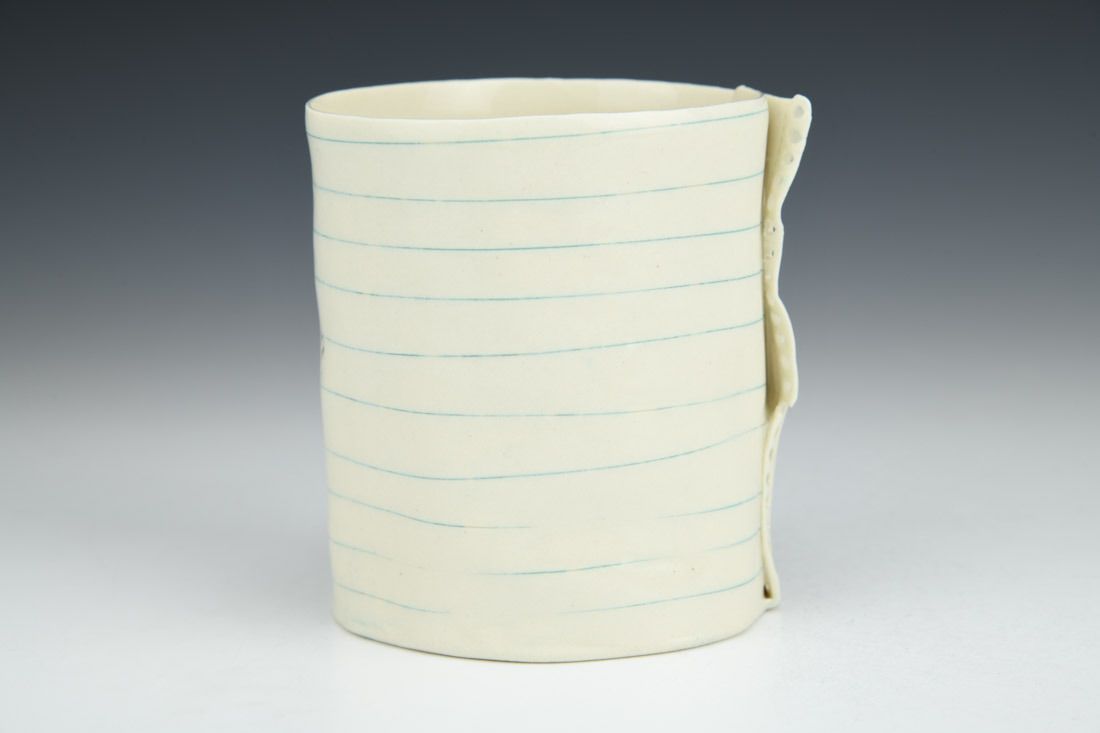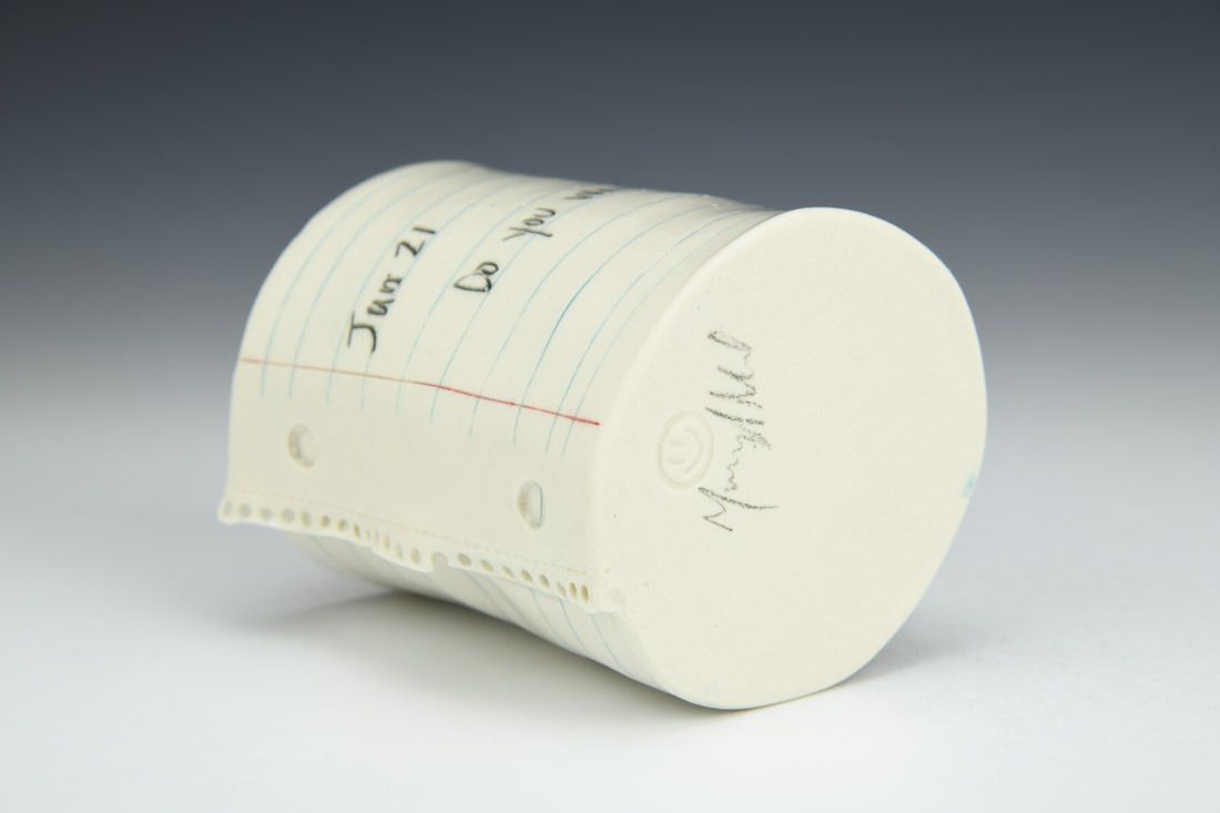 Porcelain, hand built, inlaid underglaze, cone 6 oxidation fired, 3.75 x 3.5 x 3 inches.