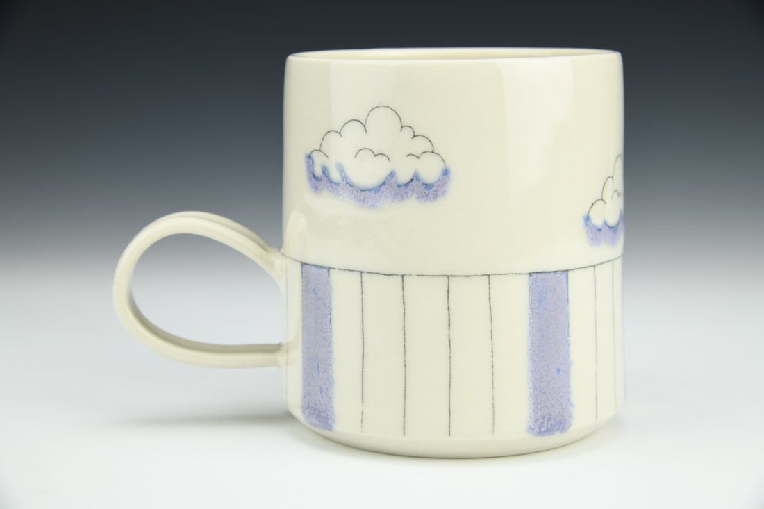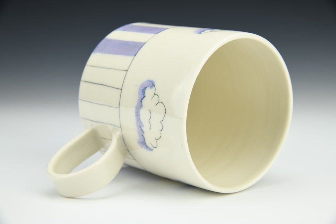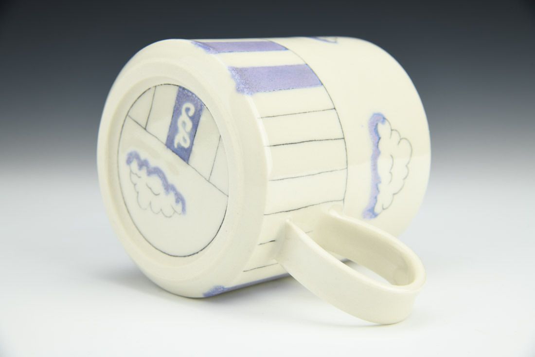 Porcelain, wheel thrown, mishima, cone 6 oxidation fired, 4.25 x 5.5 x 3.75 inches.