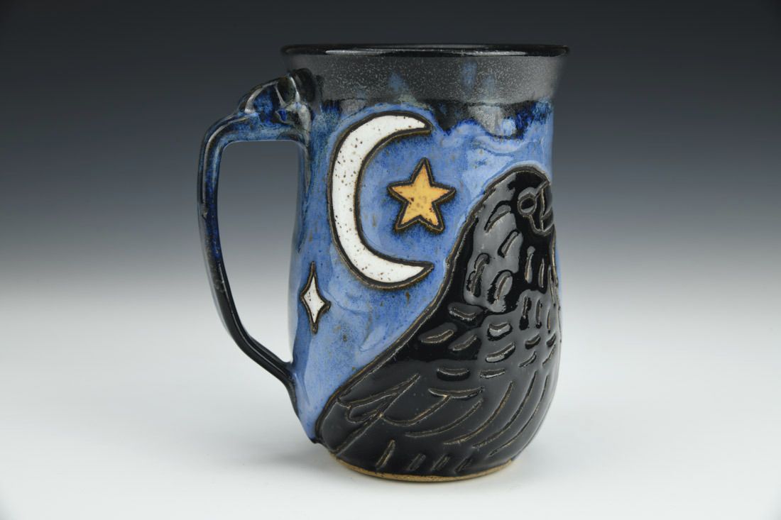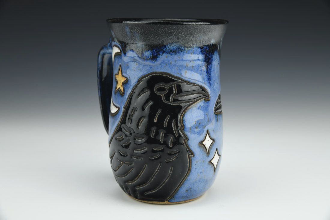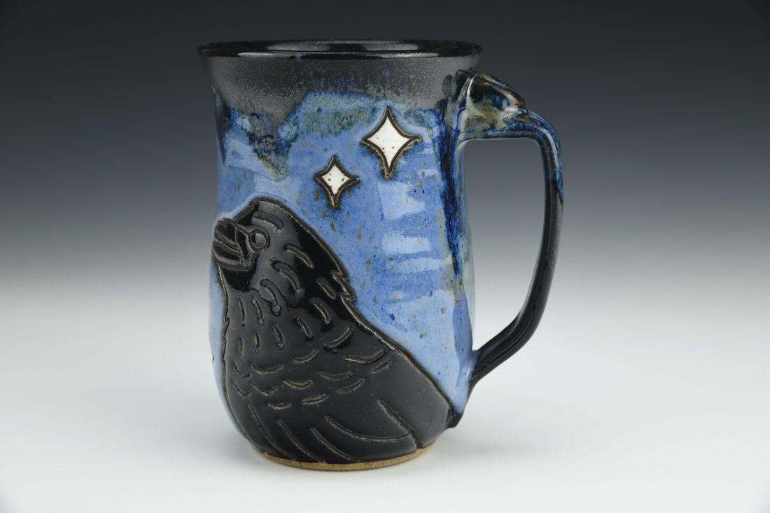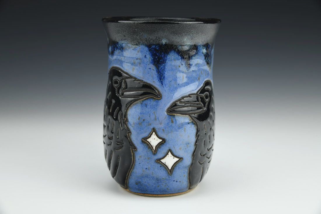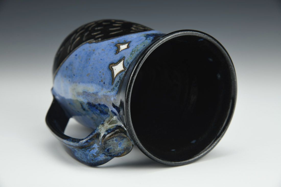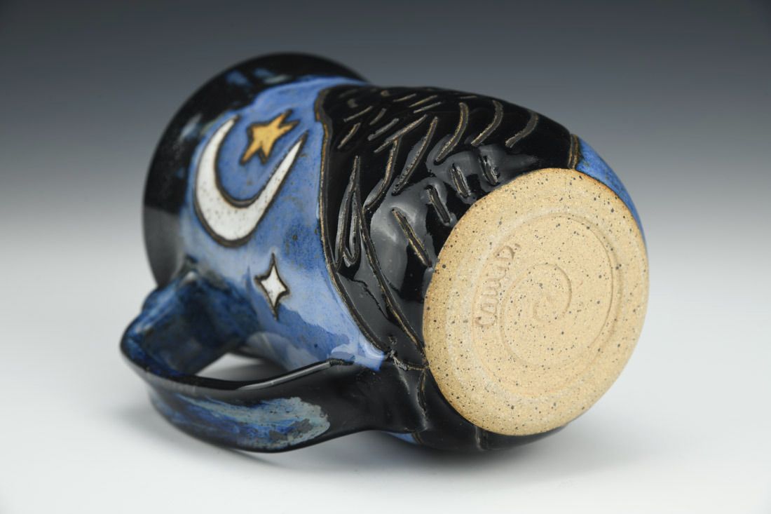 Stoneware, wheel thrown, hand carved, glaze, 5.25 x 4.75 x 3.75 inches.