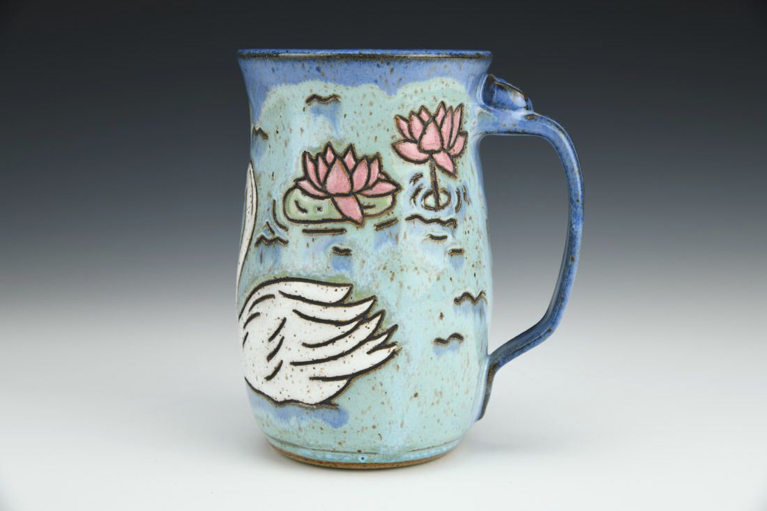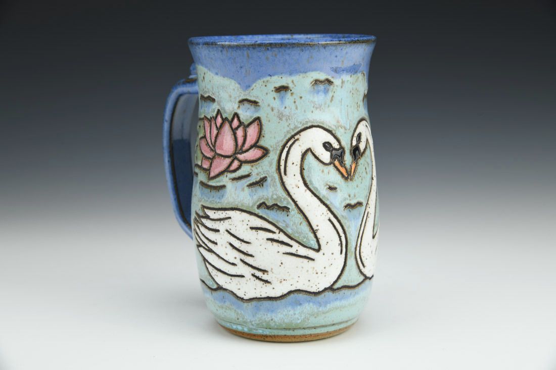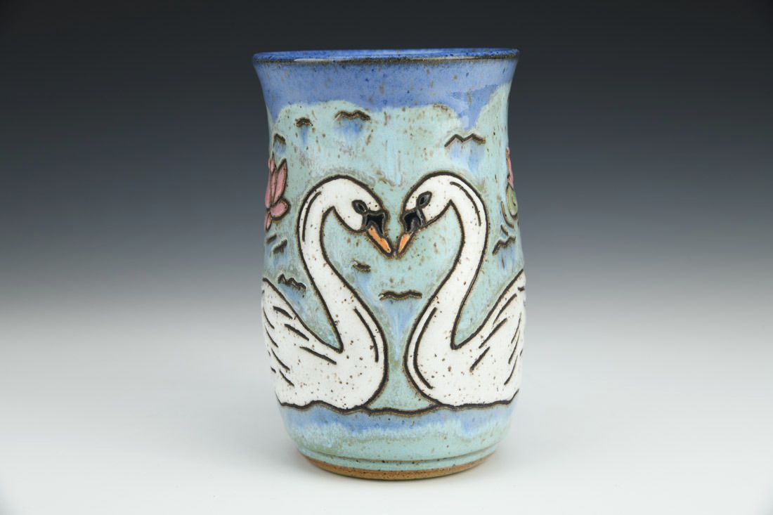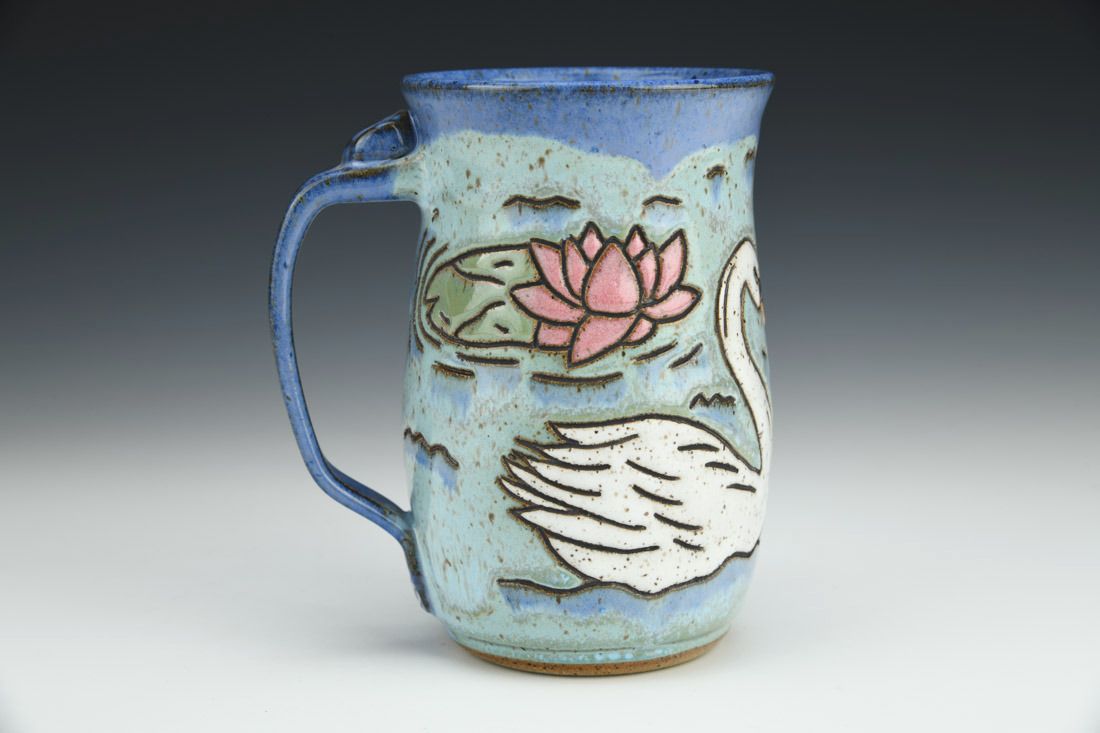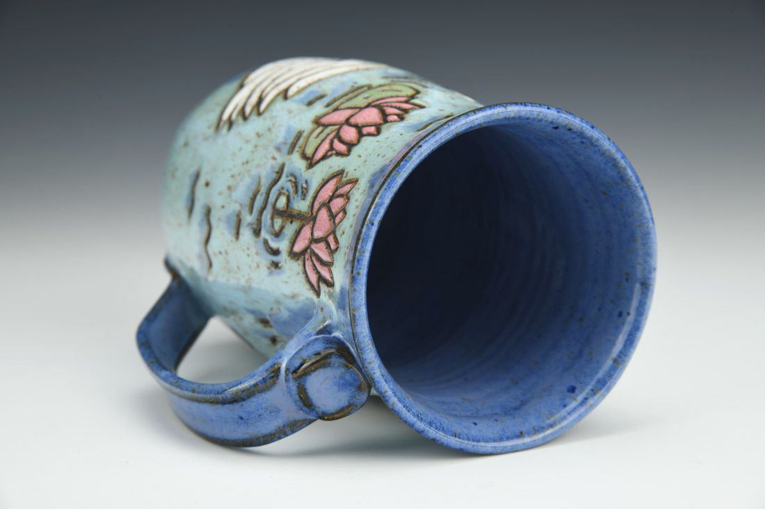 Stoneware, wheel thrown, hand carved, glaze, 5.25 x 4.75 x 3.75 inches.
