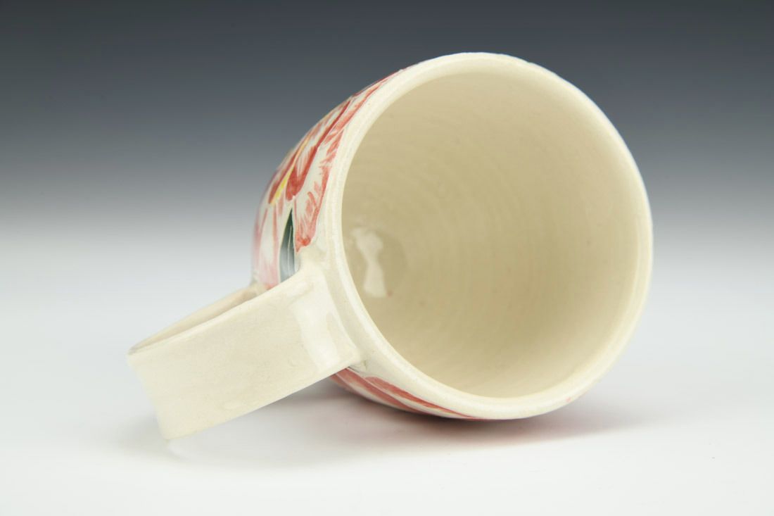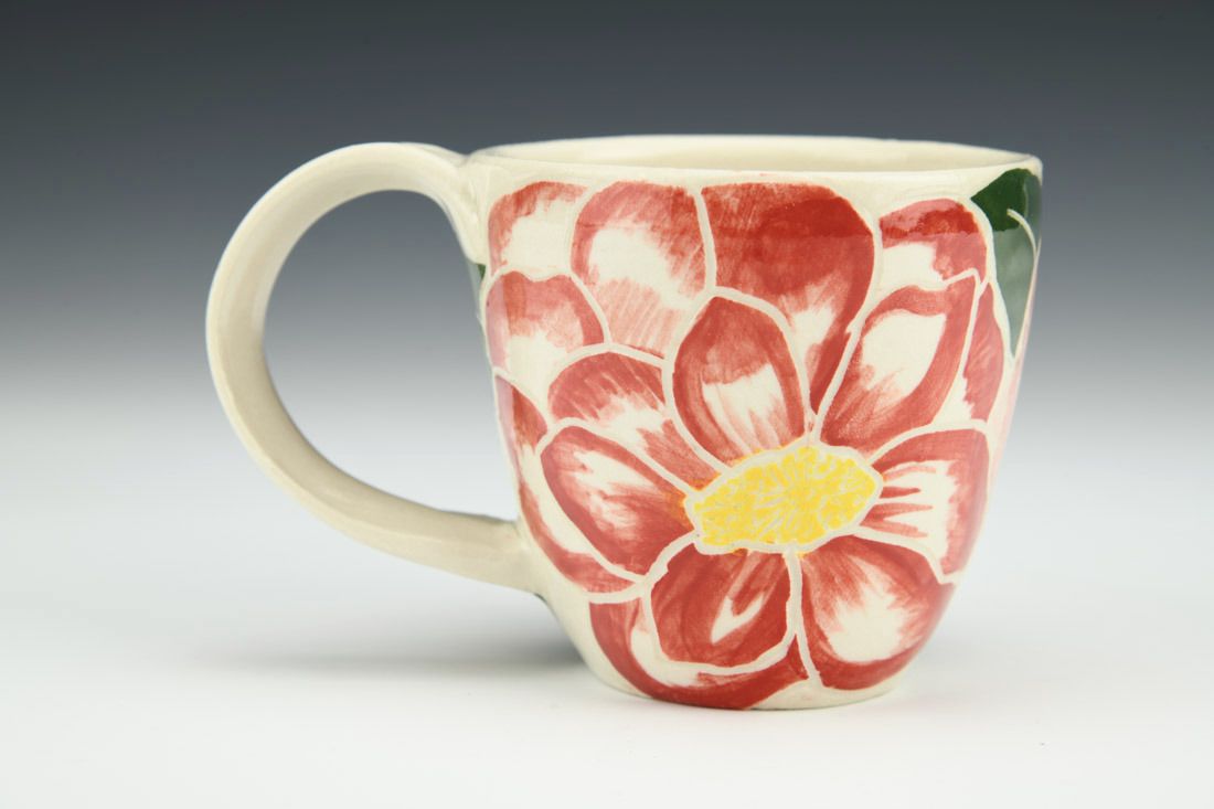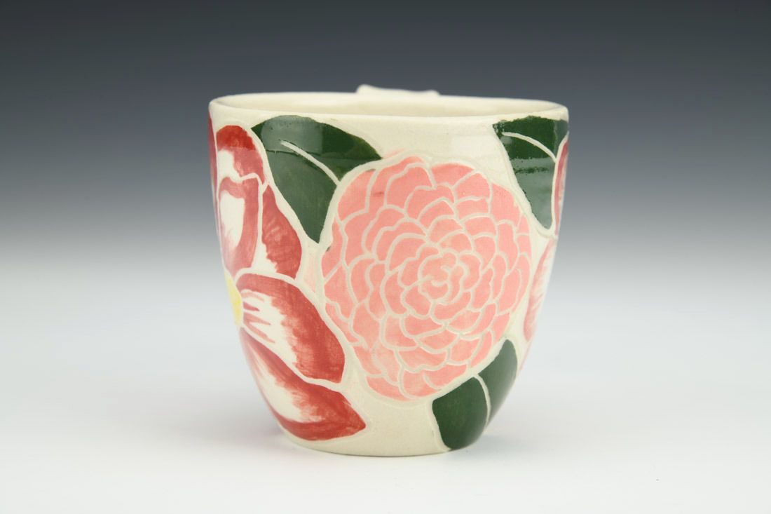 Porcelain, wheel thrown, hand painted, carved, underglaze, clear glaze, cone 6 electric fired, 3 x 4.5 x 3.25 inches.
