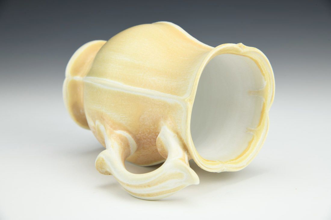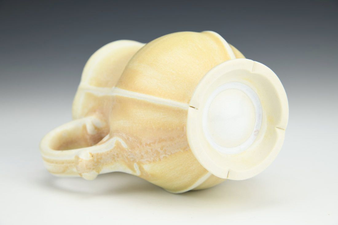Porcelain, wheel thrown and altered, glaze, 6.25 x 4.5 x 3.5 inches.
