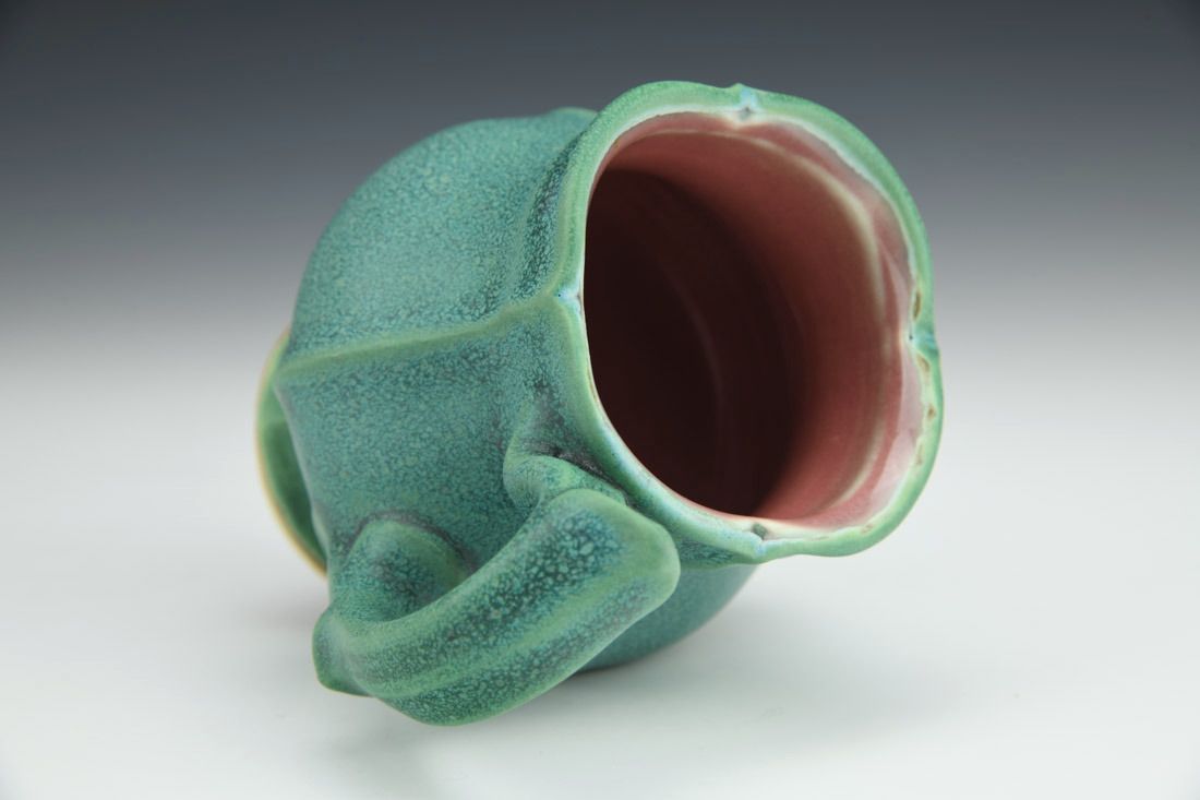 Porcelain, wheel thrown and altered, glaze, 5 x 4.5 x 4 inches.