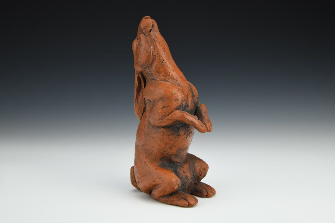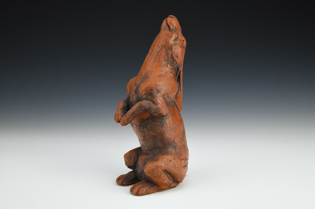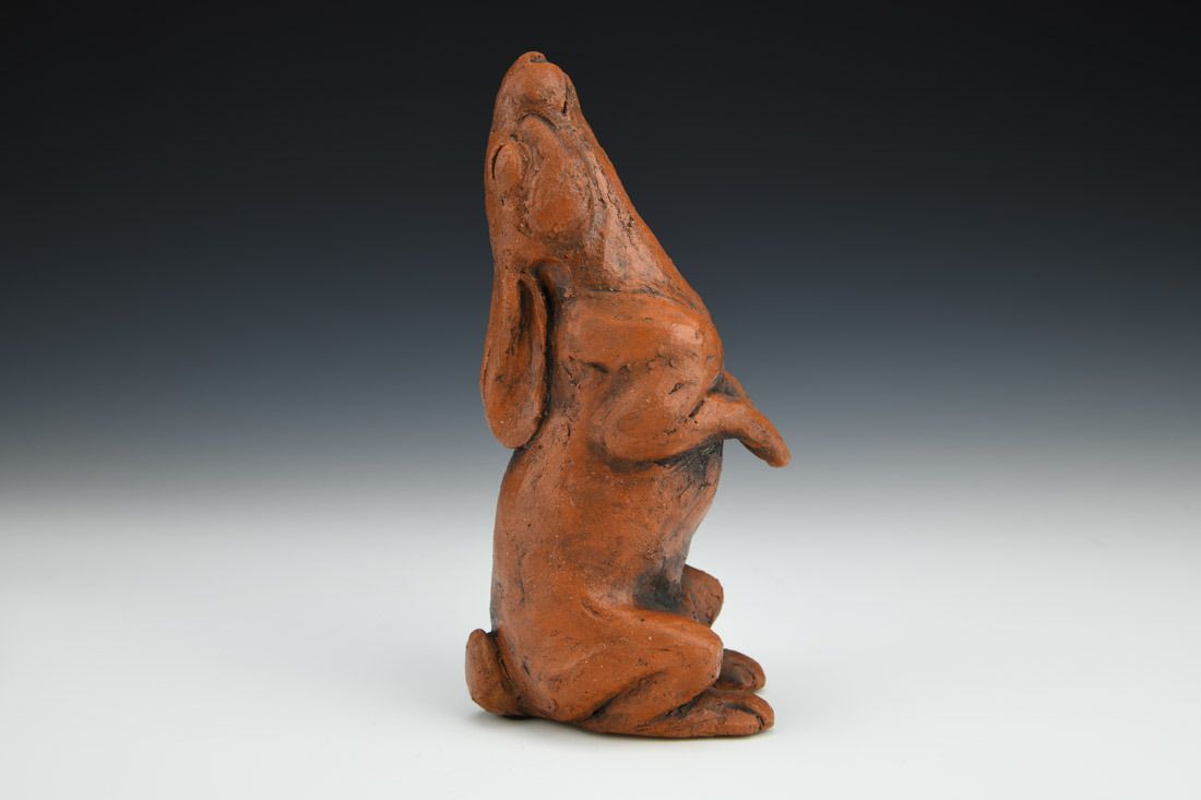Stoneware, hand built, oxide washes, low fired 7.25 x 3.5 x 3.75 inches.